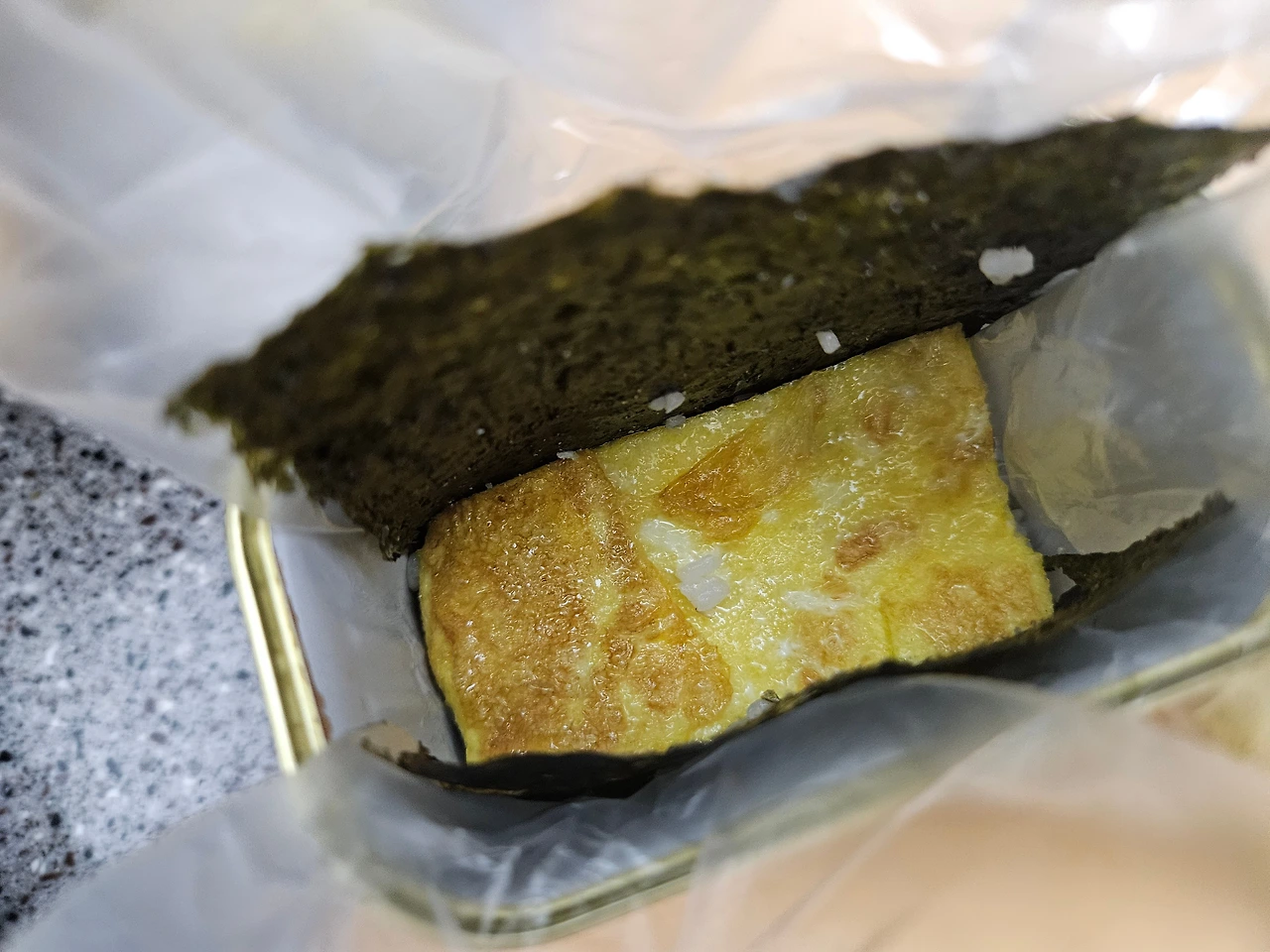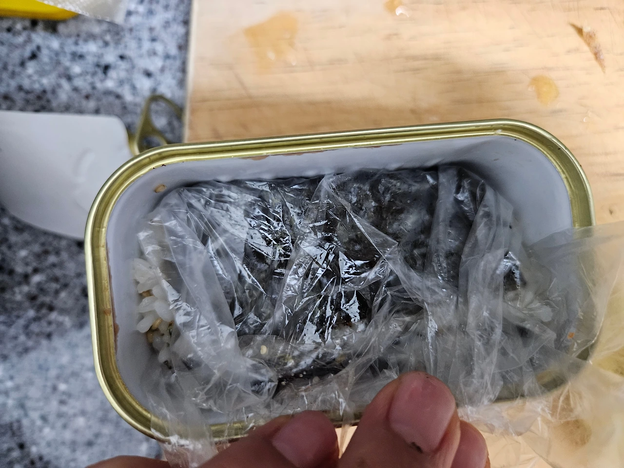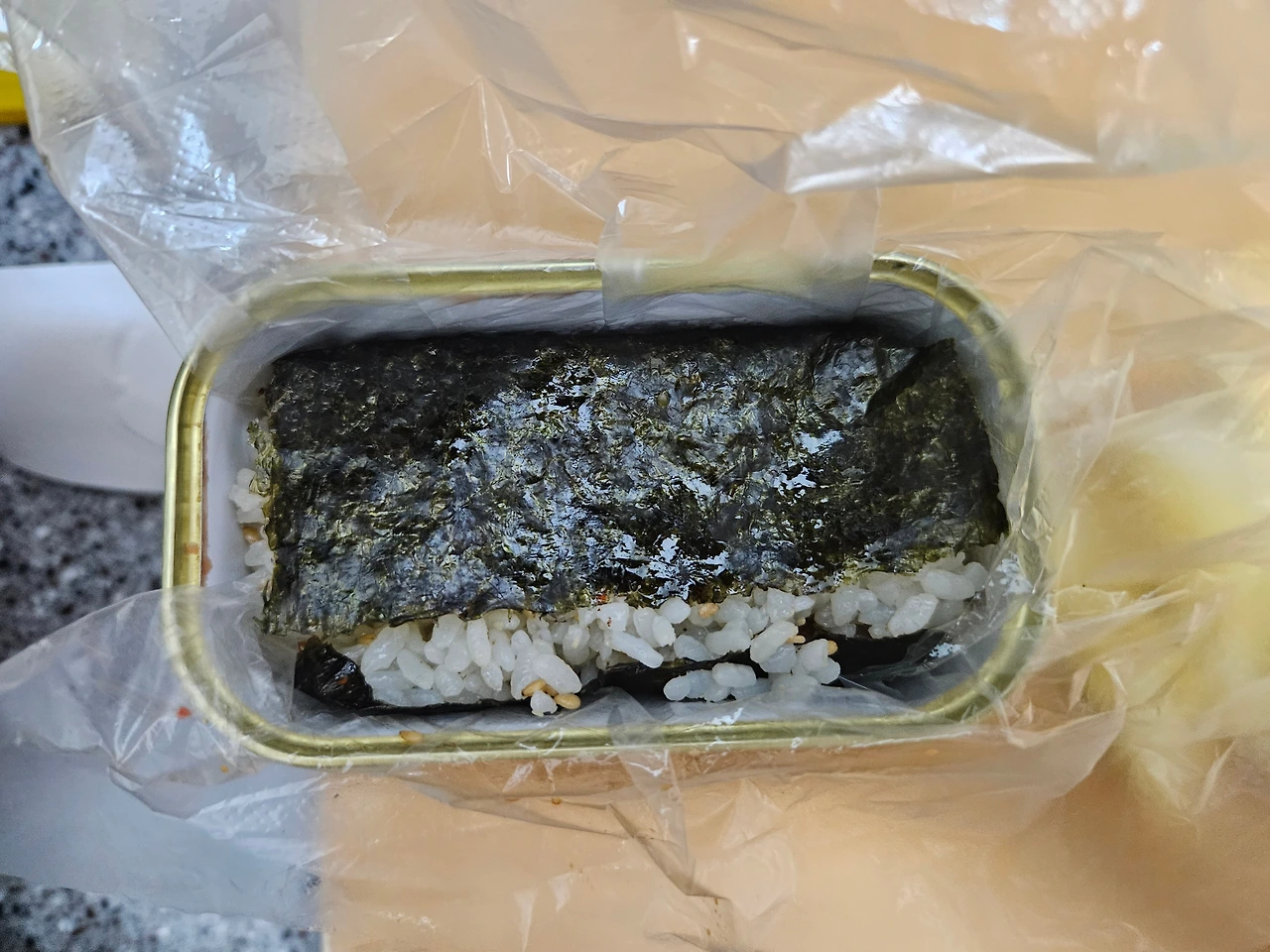 비닐팩 가장 큰 것을 4등분 내고 김밥김을 길게 2등분 냈다. 사각햄통을 가져다 앞에 두고 비닐팩을 깔고 김밥김을 넣었다. 밥 한 숟갈을 볼록하게 떠서 넣고 사각햄을 넣는다. 다시 밥 한 숟갈 볼록하게 떠서 넣고 이번엔 볶음김치를. 다시 밥 한 숟갈 볼록하게 떠서 넣고 계란을 올리고 밥으로 덮는다. 마지막 의식은 김이 길게 남은 쪽을 덮고 비닐까지 덮어 꾹꾹 누른다. 꾹 눌러졌다 싶으면 비닐을 당겨 김밥을 꺼낸다.