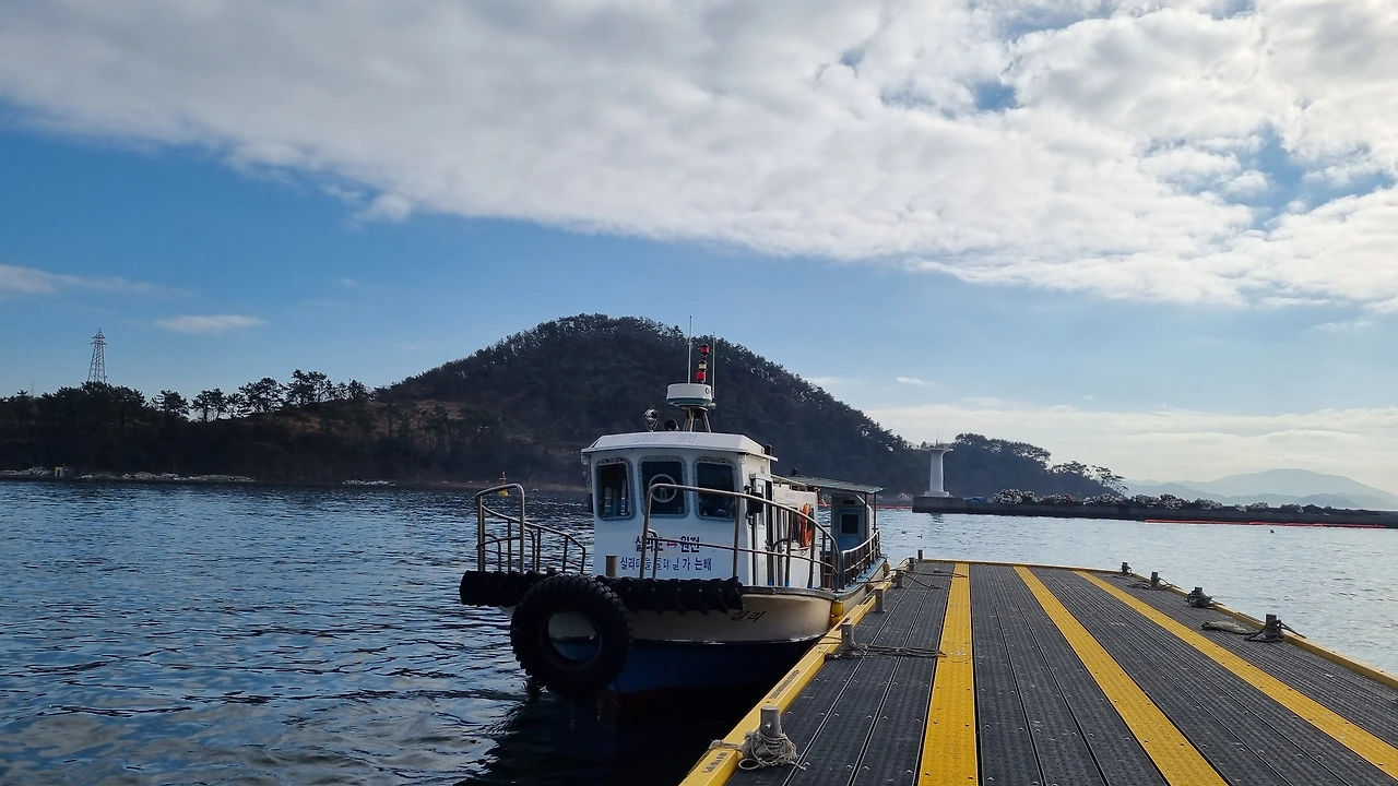 원전선착장에서 실리도들어가는 배, 뒤로보이는 실리도