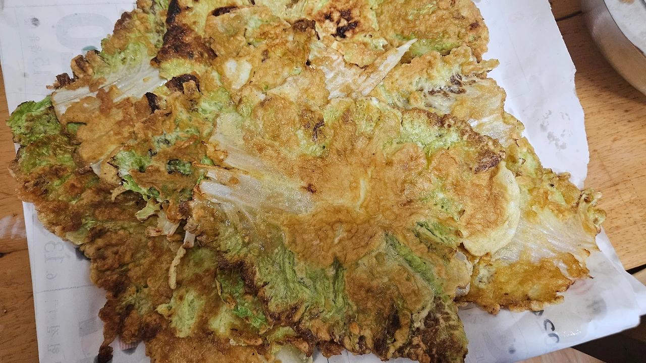 전을 부치니 명절이 왔음을 실감하게 된다. 우리 집은 도련님(서방님) 가족만 오시기 때문에 많은 음식을 하지 않는다. 딱 상에 올릴 정도만 하기 때문에 음식장만하는 게 그리 어렵지 않다. 명절마다 전을 굽고 나면 남는 계란물로 다양한 전을 굽는다. 버섯 전이나 고추전, 혹은 계란말이등 남는 계란물을 활용해 음식하나를 더 만든다. 의외로 차례음식보다 이런 게 더 맛있다. 오늘도 어김없이 남는 계란물을 이용해 배추 전을 만들었다. 어제 나박김치를 만들 때 남겨두었던 배춧잎이었다. 사실 배추 전은 옛날 남자친구집에서 처음 맛보았던 음식이기도 하다. "어머니~이거 정말 맛있어요. 이렇게도 전을 굽나 봐요? 처음 먹는 건데 진짜 맛있어서 계속 먹게 돼요~" "처음 먹어? 많이 먹어~~ 또 해줄게." 전 남자친구 어머님과 나는 케미가 좋았다. 남자 친구보다 어머니옆에 붙어 있기를 좋아했었다. 어머님댁에 놀러 가면 늘 맛있는 음식을 해 주셨는데 그 음식 중 하나가 배추 전이었다. 배추 전을 굽고 있으니 옛 생각이 스쳤다. 나도 모르게 피식 웃음도 삐져나왔다. 어른들의 건강을 빌어보기도 했다. 인연이 아니었을 뿐, 나에겐 좋은 분들이었으니까. 배추 전을 해놓고도 먹어지지가 않는다. 다이어트 의지 때문인 건지, 기름냄새에 질려 그런 건지 나도 잘 모르겠다. 대신 가족들이 맛있게 먹는 모습으로 배를 채웠다. 배추 전 하나로 과거여행도 다녀오고 가족들 입도 즐겁게 해 주니 고마운 음식이 되었다. 다음 명절에도 만날 수 있을까? 일단 남아있는 배추 전부터 한입 먹어봐야겠다.