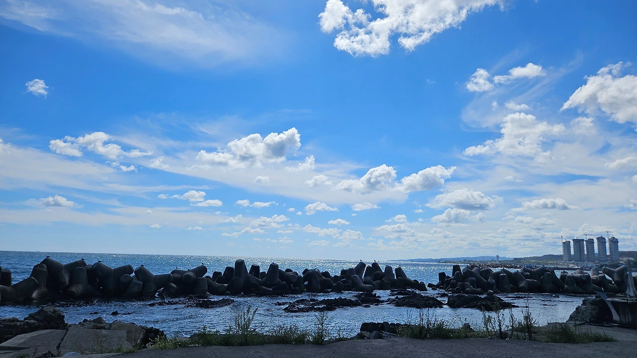 일요일이지만 하던 대로 4시에 기상해 운동을 하러 가려했다. 신랑이 몸이 쑤신다며 끙끙대고 있으니 모른척하고 운동을 하러 갈 수가 없었다. 30분 넘게 마사지를 해주고 나니 진이 빠져버렸다. 운동은 일단 뒤로 미룬 채 누워버렸다. 운동할 기력은 없지만 매일 하는 글쓰기는 해야겠다 싶어 브런치글을 쓰고 나니 아침밥을 달란다. 쉬는 날도 6시에 밥 먹는 집은 우리 집뿐일 거라며 아침을 준비했다. 아침을 주고 일어나자마자 돌렸던 빨래를 널었다. 7시에 친구랑 만나 도서관에 간다는 딸을 태워다 주고 오니 설거지는 이미 산더미다. 설거지거리는 뒤도 보지 않고 자리에 가서 다시 누웠다. 고단했었나? 언제 잠들었는지도 모른 채 한 시간 넘게 자버렸다. 신랑이 마구 깨우길래 보니 시어머니는 이미 출근을 하셨고 아들도 친구들과 자전거라이딩을 떠난 후였다. "우리도 나가보자, 준비해라." 처음에는 보문호수를 한 바퀴 돌자고 나섰는데 차축체를 한다는 소식을 듣고 방향을 바꿨다. "우리 해파랑길이나 걸으나 갈까? 구룡포에서 호미곶까지, 14킬로 정도 되는데 4시간 반정도 걸린다네. 가다 힘들면 버스 타면 되니까 일단 가보자." 그렇게 우리는 해파랑길 트레킹을 하게 되었다. 금강산도 식후경이랬다. 구룡포에 다 와가는데 돌짜장짬뽕이라는 가게가 보인다. 대기줄이 마치 뱀꼬리 같았다. "나올 때 먹어 볼까? 우리는 일단 국밥 한 그릇하고 출발하자." 신랑말을 따라 국밥집으로 향했다. 나는 구룡포에서 살았던 적이 있지만 오래전일이고, 신랑은 이곳에서 일한 적이 있어서 나보다 속속들이 잘 알고 있었다. 별일 아닌데도 참 신기했다. 배를 든든히 채우고 일본인가옥거리 주차장으로 향했다. 구룡포 일본인가옥거리를 시작으로 해안길을 따라 걸었다. 가게와 가게 사이에 보이는 바다가 유난히도 반짝거린다. 나도 모르게 시선을 뺏겨 그쪽을 향해 걸었다.