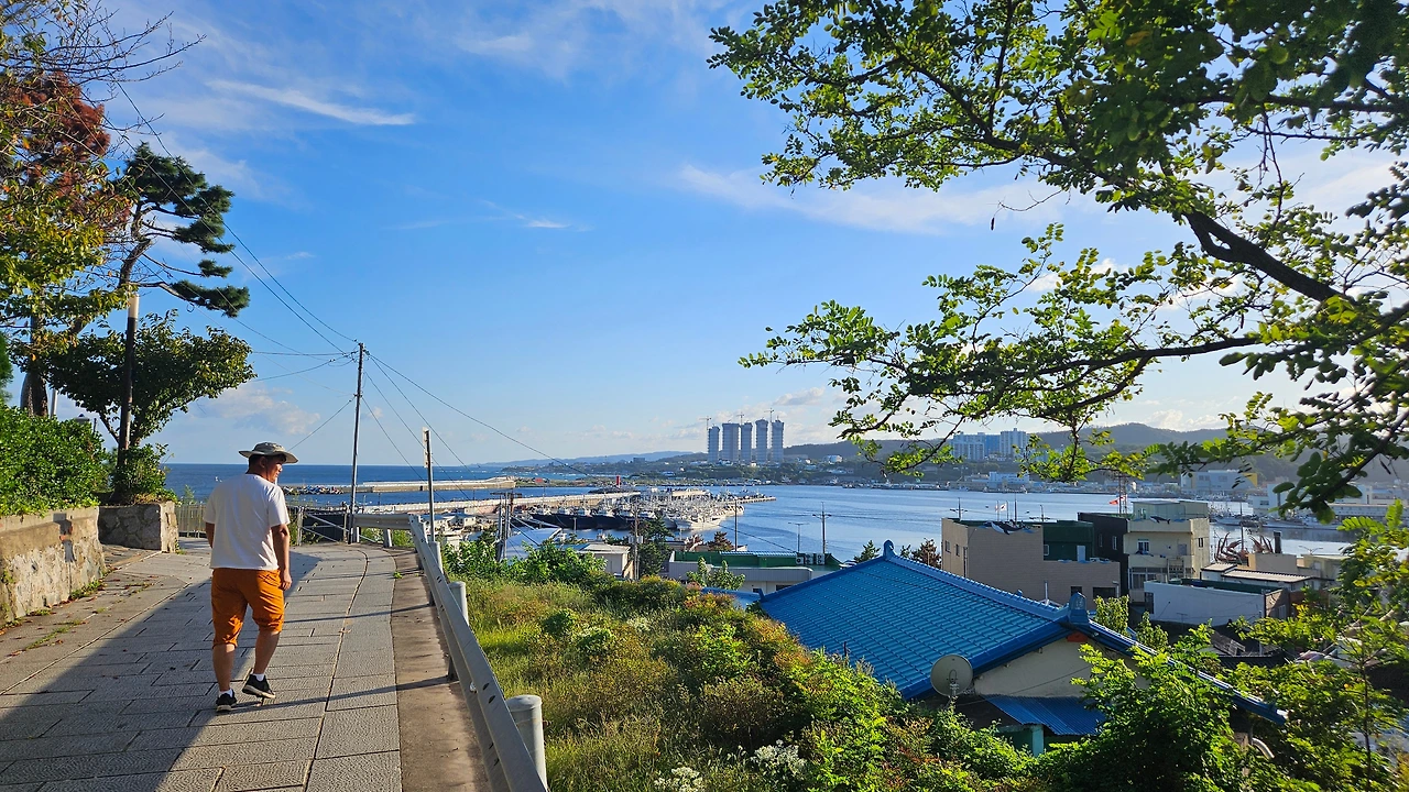 "동쪽 땅끝마을이래~" 친구들과 뛰어놀던, 교회에 가려고 왔었던 동네가 동쪽 땅끝마을이라니, 감회가 새로웠다. 무지개색깔로 칠해진 돌을 보니 제주도가 연상됐다. 길에 없던 사람들이 여기엔 몇 분 계셨다. 이곳이 관광명소가 될 줄이야. 놀랍고 신기했다. 왔으니까 기념사진 한 장 박고 다시 발걸음을 옮겼다. "이제 서쪽 땅끝마을만 가면 되겠다" 다음을 기약하는 설렘이 꽤 좋았다. 가는 내내 파도와 갈매기가 지루하지 않게 해 준다. 가다가 끊어진 길이 몇몇 군데가 있다. 아쉽지만 도로로 이동할 수밖에 없었다. 도로를 걷는 맛도 나름 괜찮았다. 무엇이든 생각하는 것과 행동해 보는 건 다른 느낌을 선사하는 것 같다. 모든 경험은 피와 살이 될 수밖에 없다는 진리를 다시 한번 깨닫는다.