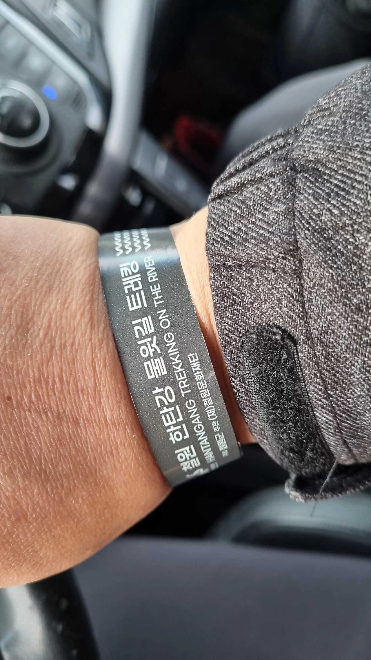 입장권팔찌 & 물윗길입구(배경이 주상절리 잔도길)