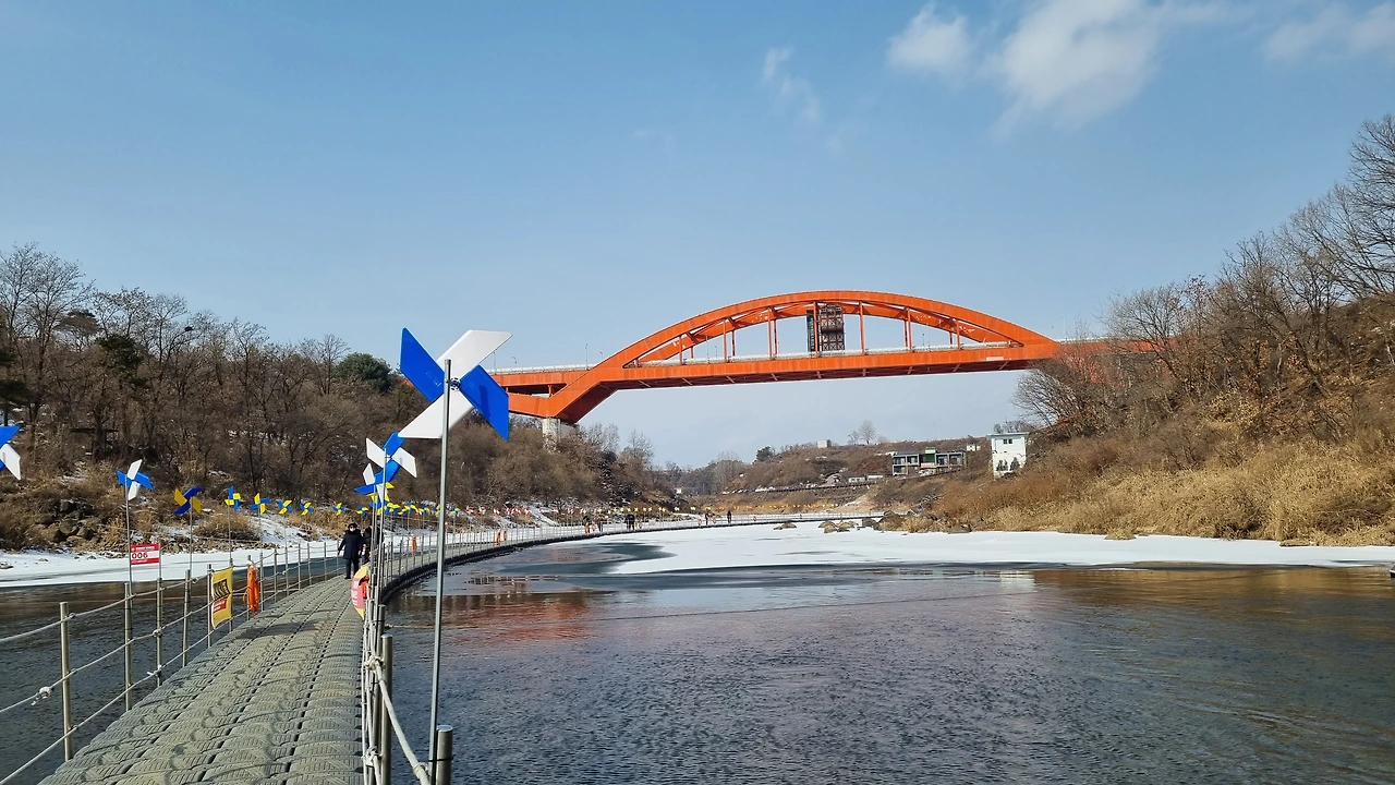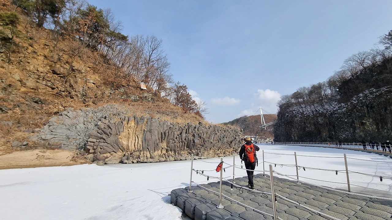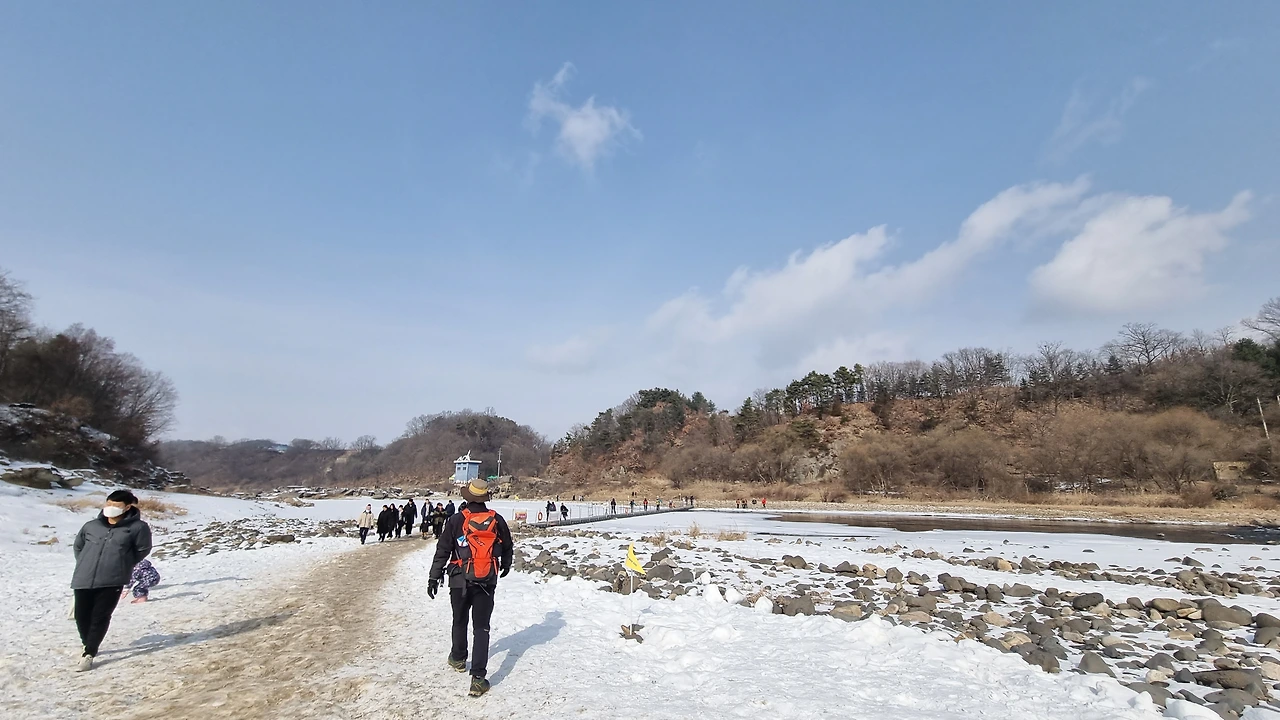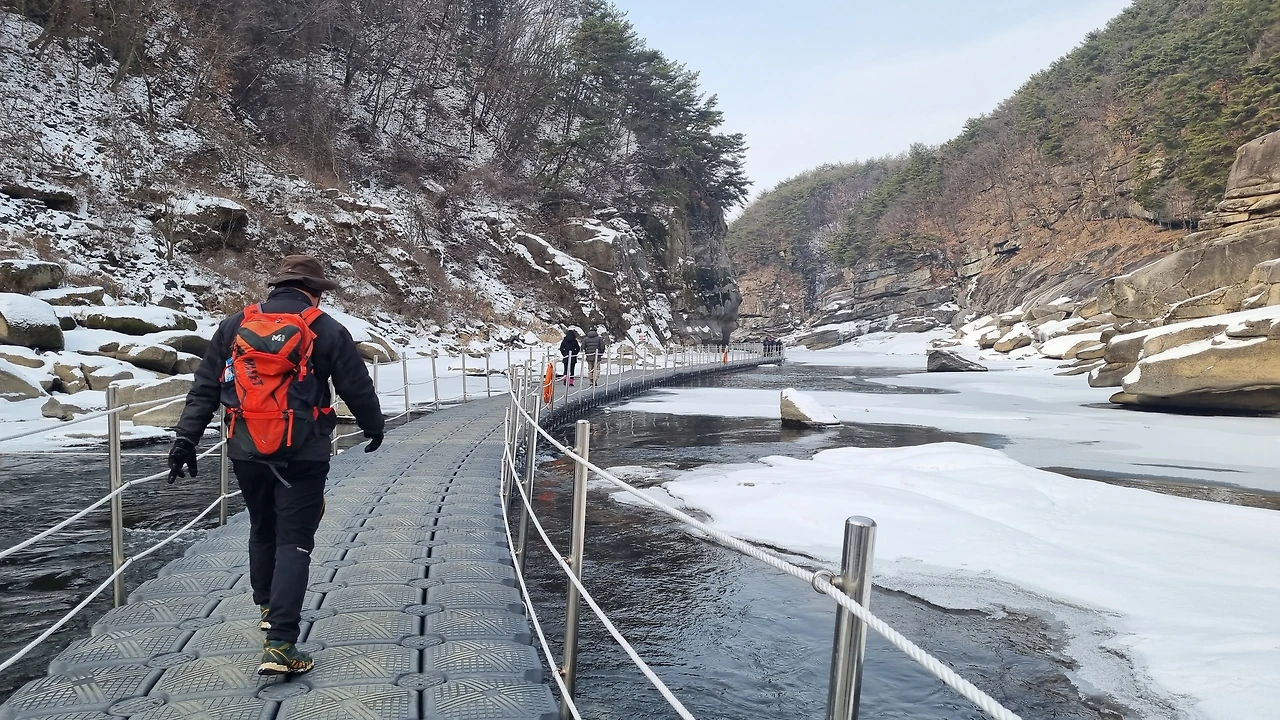 걷다 보면 부교가 종종 나오는데 많이 얼어붙은 부교는 꿀렁대는 것 없이 탄탄했다. 이것도 정해진 기일까지만 다닐 수 있다고 하니 나는 운 좋은 사람, 복 받은 사람이란 걸 다시 한번 깨달은 값진 시간이었다.