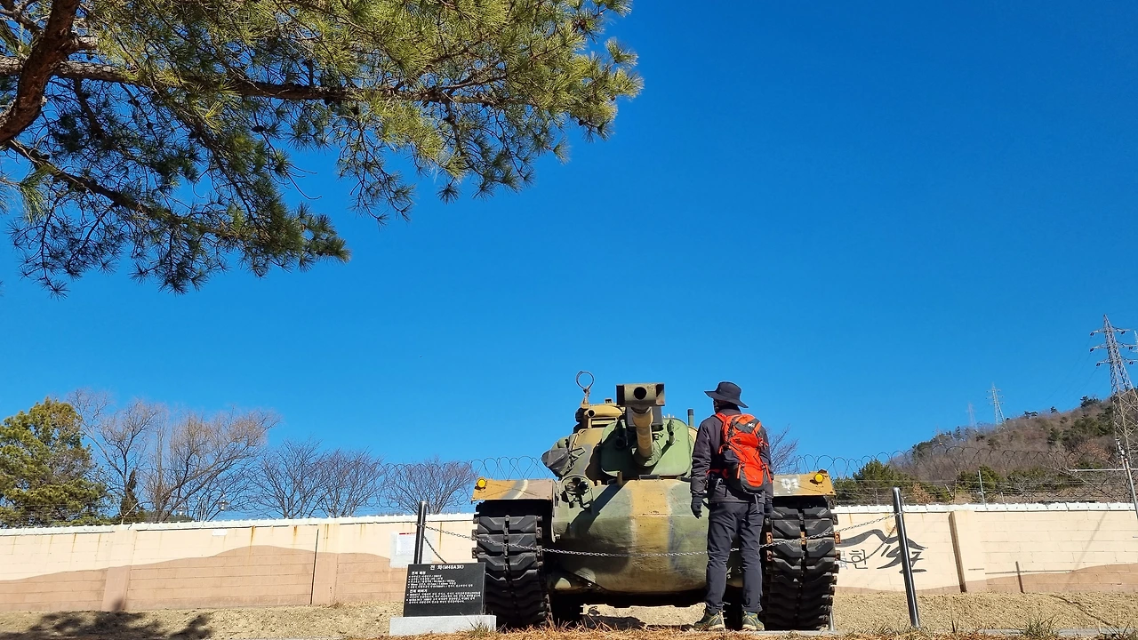 부대가 보였다. 부대 앞 전차가 눈길을 끌었다. 누가 먼저라 할 것 없이 전차구경에 나섰다. 81년생, 우리와 전차는 동갑내기였다. 왠지 모를 반가움이 더해졌다. 신랑이 부르길래 가봤더니 포구에 새 둥지가 있었다. 이곳을 삶의 안식처로 쓰다니, 놀랍고 신기했다. 한참 전차를 두리번거리다가 인사를 나누고 다시 걷기 시작했다.