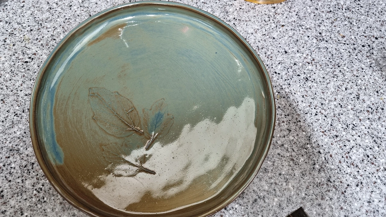 불두화 잎을 찍어 만든 접시&봄동겉절이