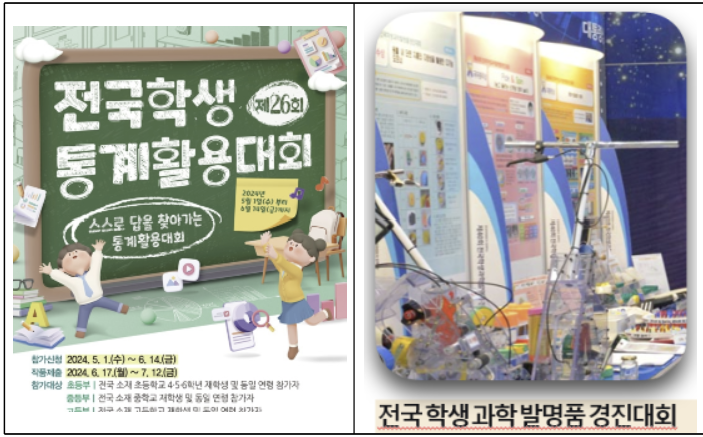 (4) 발명, 탐구 관련 대회: 통계활용대회, 발명/과학 탐구 대회, 수학 구조물 쌓기 대회(카프라) 등