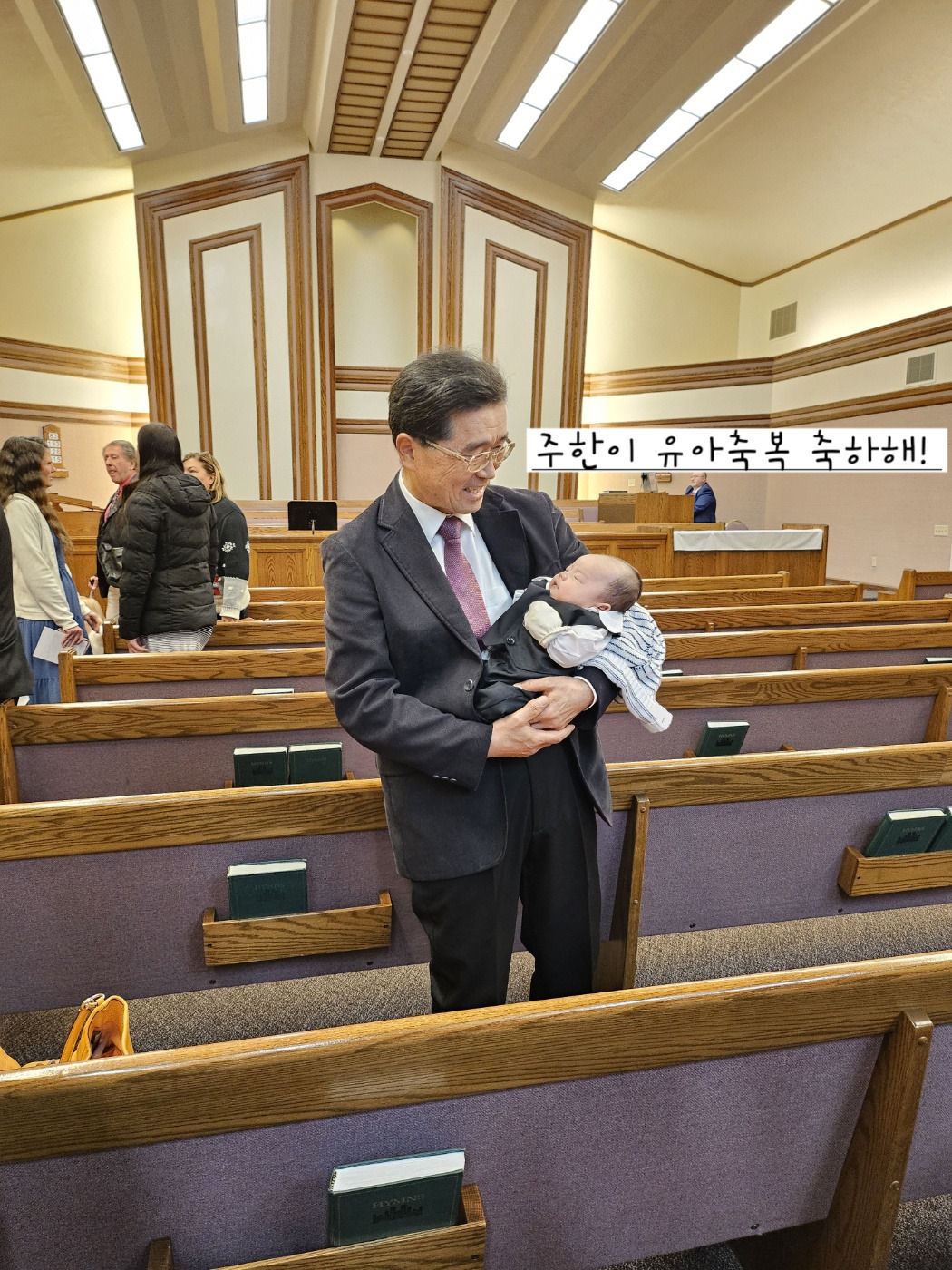 오늘은 넷째 아들이 첫 애에게 유아 축복을 하는 날이다.