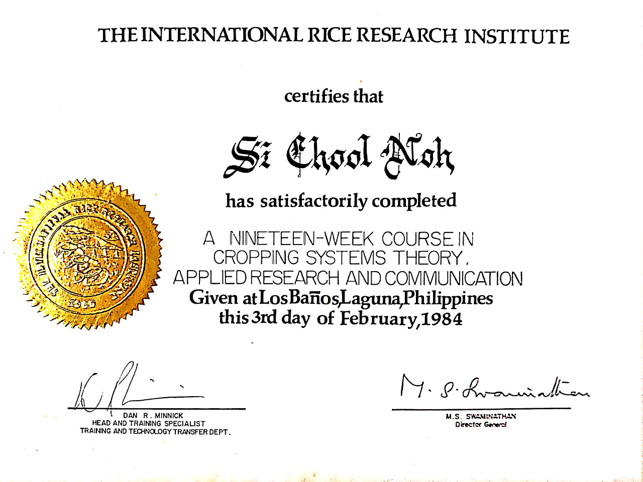 IRRI에서 5개월간의 작부체계(CSTP) 연수과정은 시험구 배치, 파종, 재배 관리, 수확량 통계 등 일련의 작물생육 연구과정을 수행하였다. 이때 경험이 농업전문가로서 역량개발과 해외 활동에 힘이 되고 있다. 중년의 농업학자들이 밤을 새 가며 공부하는데 감동하였다. 아세안 10개국의 주요 우방국으로 한국과의 교류가 보다 확대될 전망이며, 한국인 기업가들의 진출과 유학생들도 증가될 것으로 본다. 필리핀에서 150일이나 같이 살았는데도 '늘 웃는 모습'은 닮지를 못했다. 욕심을 버리고 매사에 감사하며 사소한 것에서 행복을 찾다 보면 나도 좀 더 밝아지지 않을까.