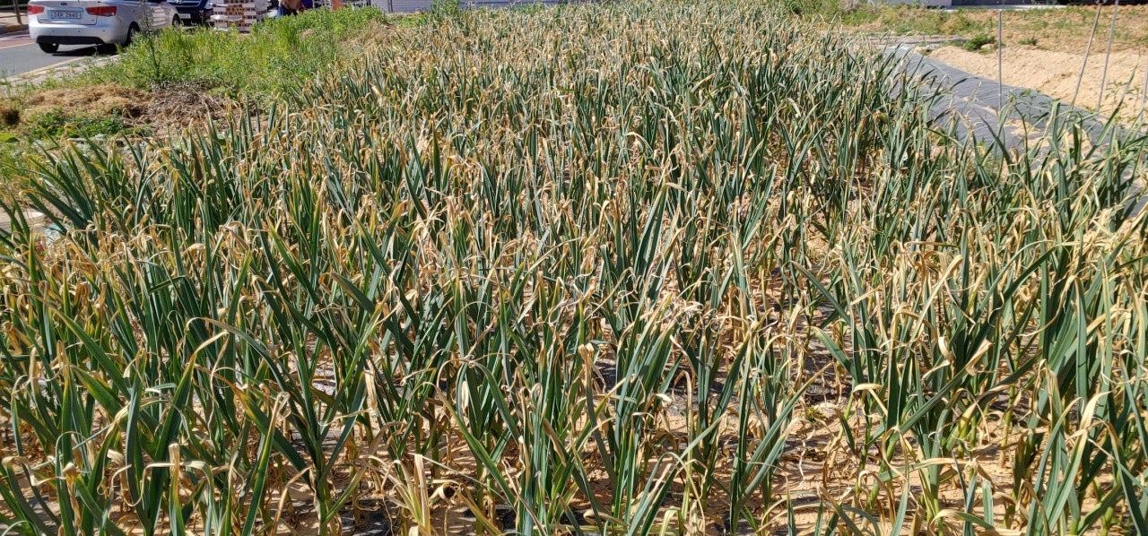 수확 시기도 아닌데 마늘잎이 말라가고
