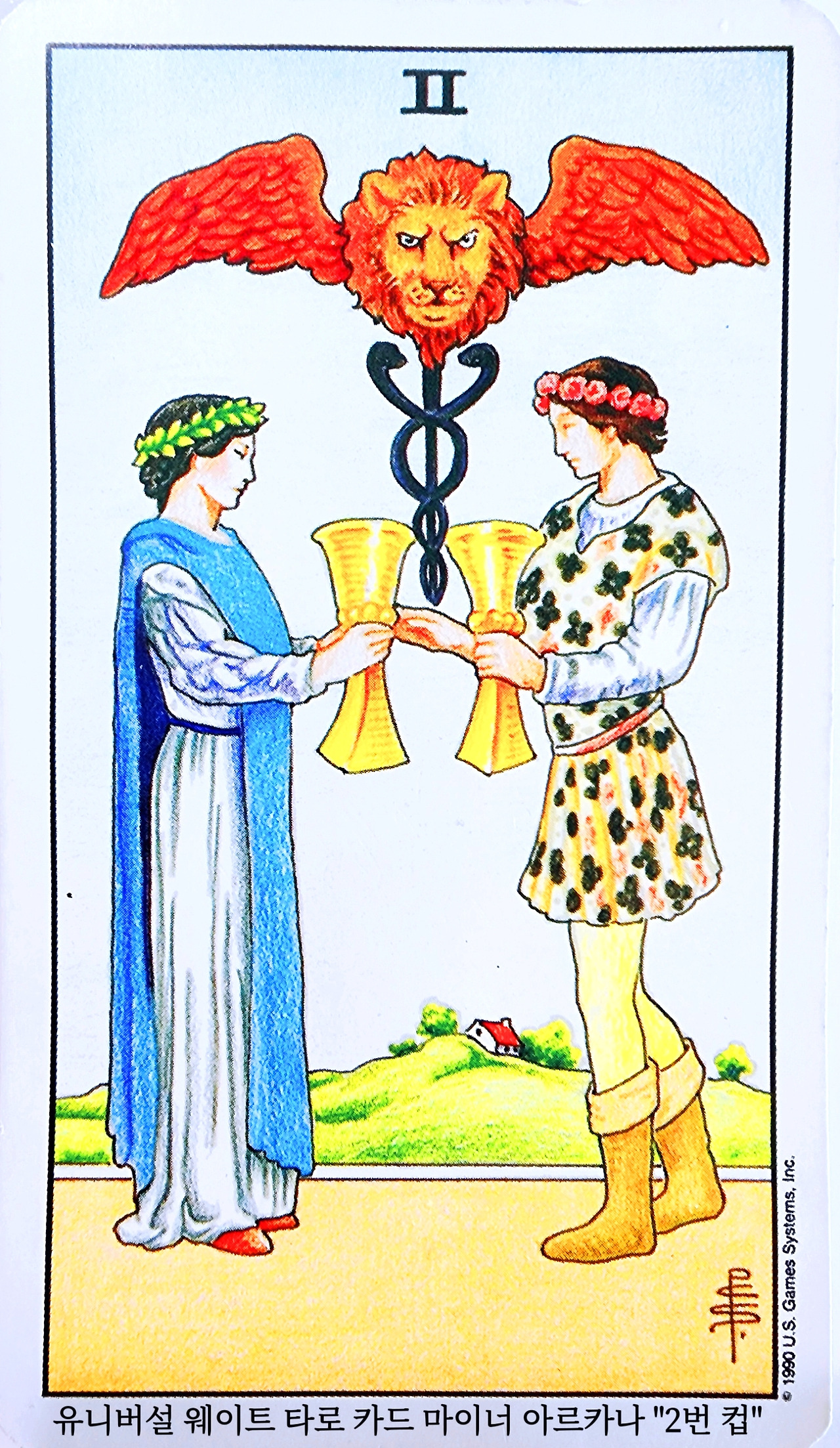 2번 컵 카드에 나오는 두 인물은 상호 신뢰를 바탕으로 한 연결을 의미한다.