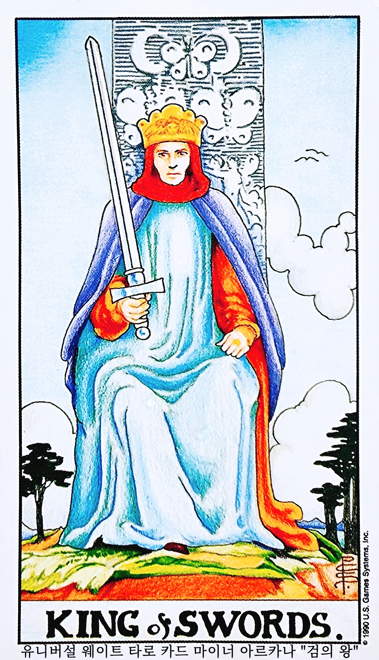 “현재 상황 자리에 나온 ‘검의 왕' 카드로 보아, 내담자님은 언변과 문서를 다루는 전문적인 일을 하고 있을 것으로 보입니다.