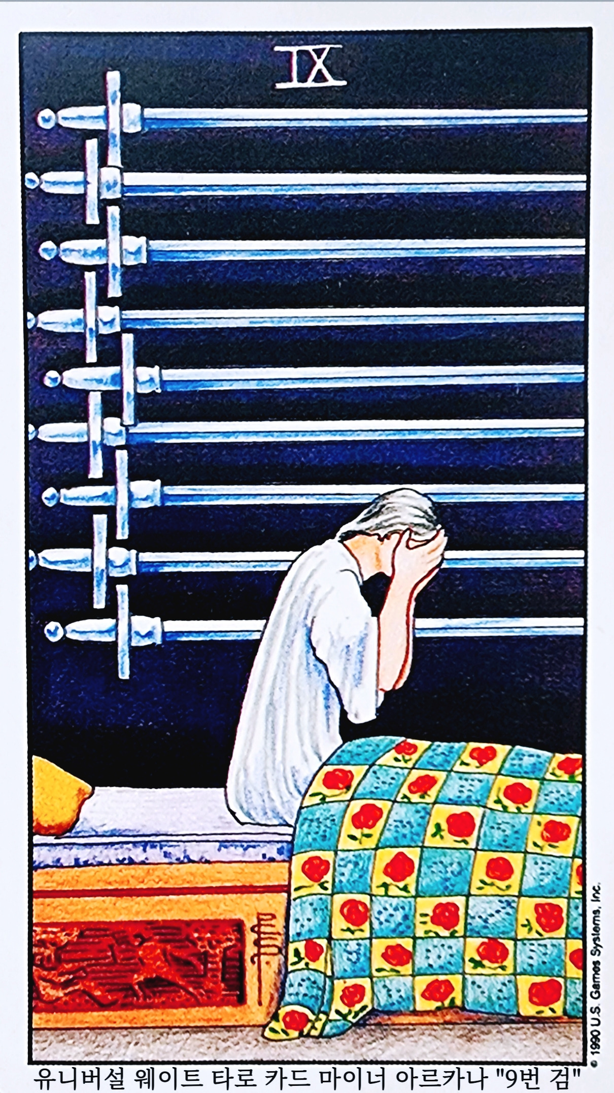 2. 현재 자리에는 9번 검(NINE of SWORDS) 카드가 나왔다.