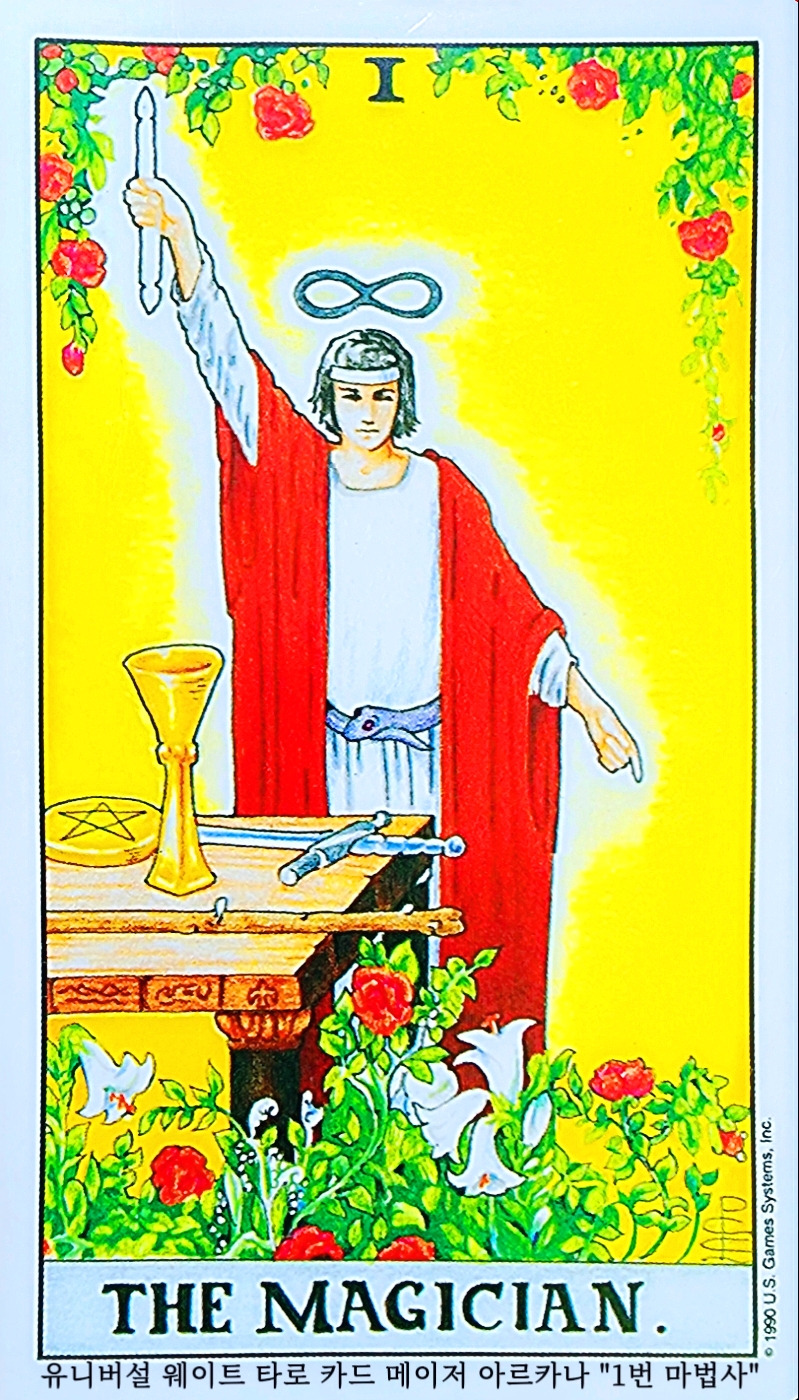 4. 조언점으로는 1번 마법사(THE MAGICIAN) 카드가 나왔다.
