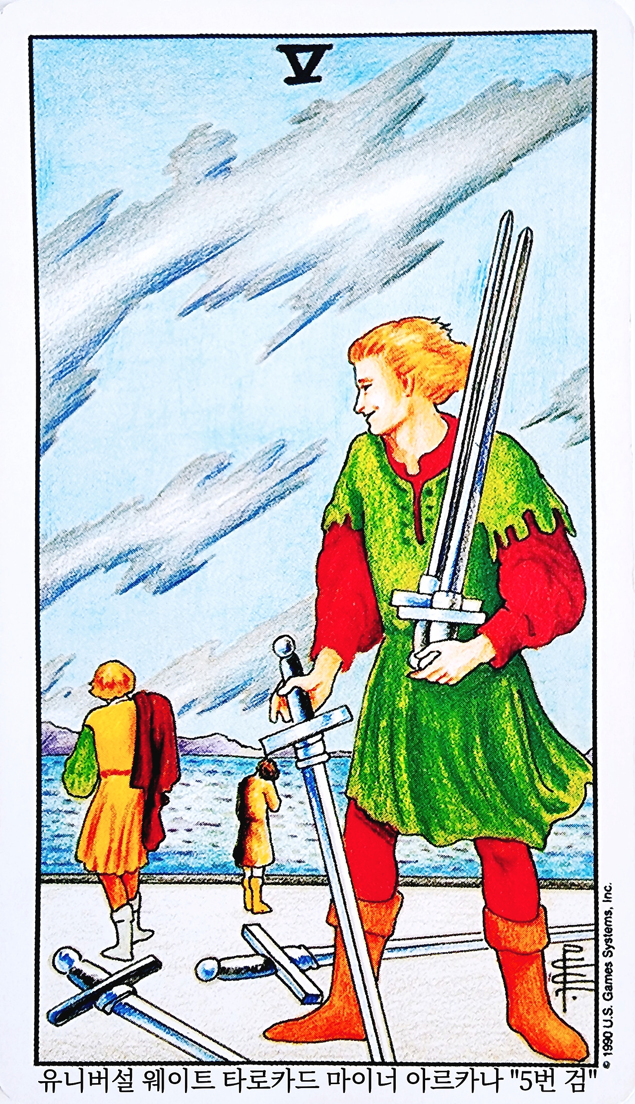 1. 과거 자리에는 5번 검(FIVE OF SWORDS) 카드가 나왔다.