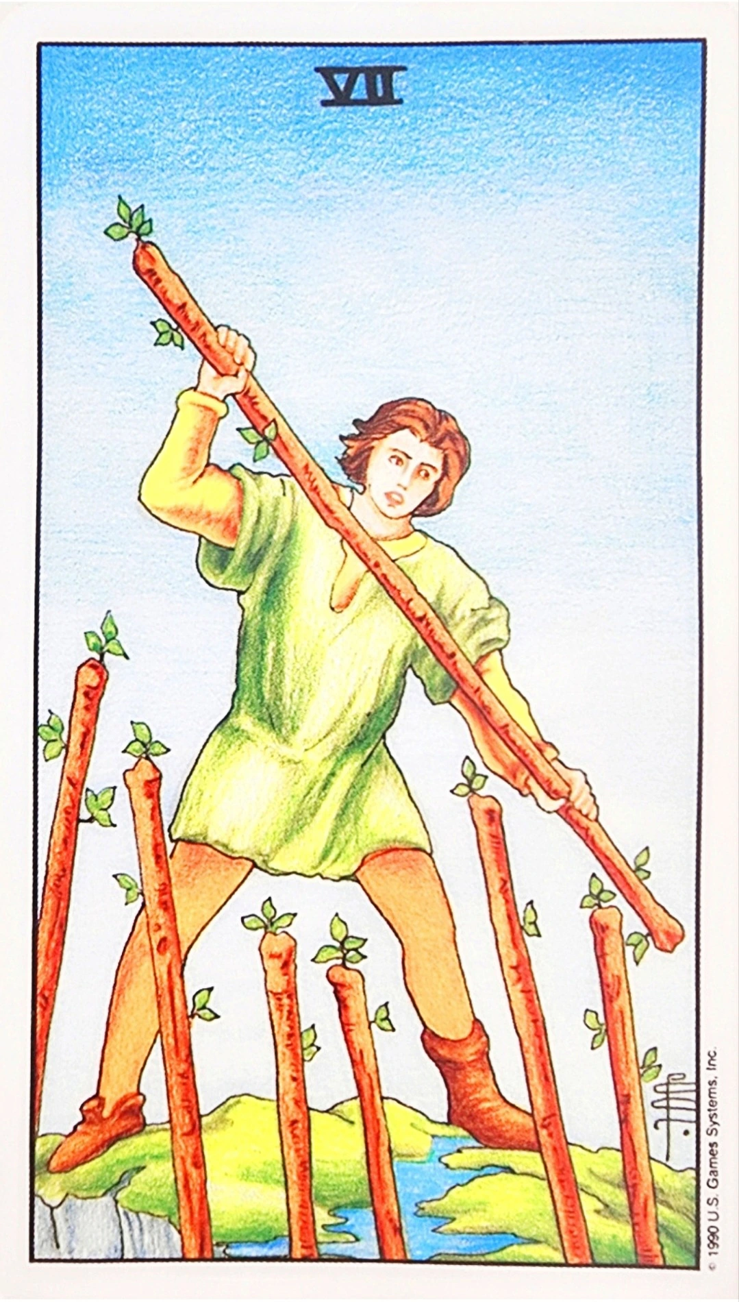타로전환점운을 볼 때, 7번 나무 (SEVEN of WANDS) 카드가 인간관계운 자리, 이동운 자리, 금전운 자리에 나왔을 때, 각 자리에 해당하는 해석을 통해 전환점여부를 파악할 수 있다.