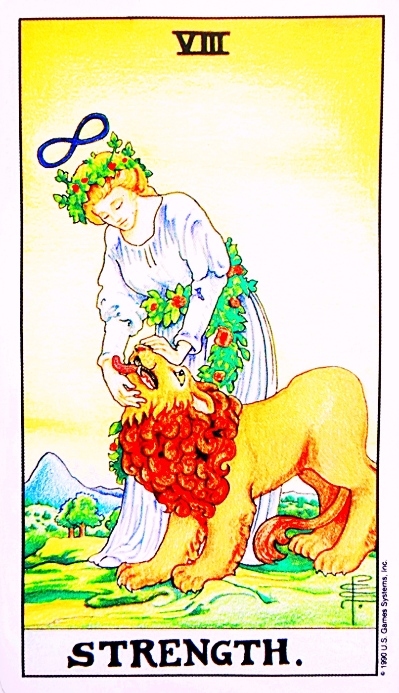 8번 힘 카드가 전하는 메시지는 용기와 내면의 힘(力)입니다. 힘이란 것이 꼭 외부에서 강력하게 발산하는 능력, 즉 물리적인 힘에만 한정되지는 않습니다. 오히려 과도한 화(怒), 격한 불쾌감처럼 분노를 다스리는 힘! 그리고 억제되지 않은 열정과 끝없는 욕망을 조율하며, 외부적인 공격으로부터 두려움을 껴안았을 때 진정한 힘을 발산하게 됩니다.