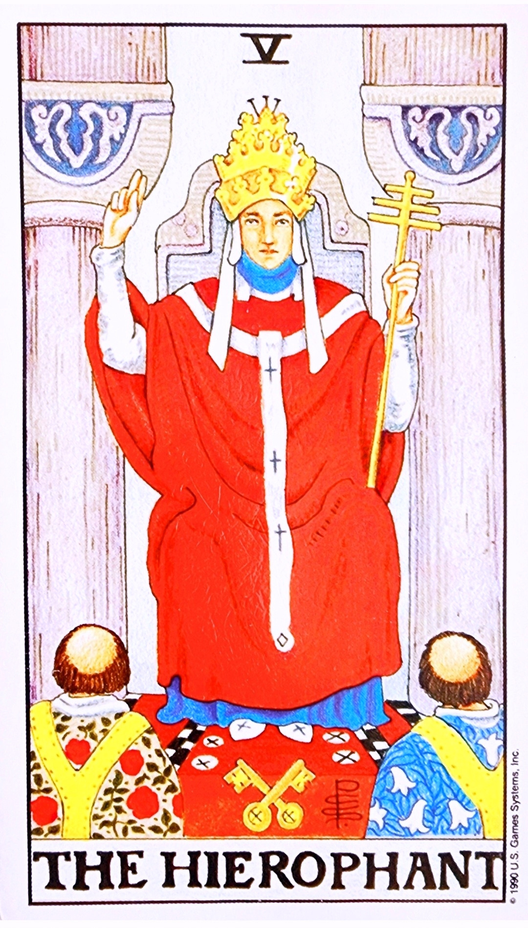 즉, 교황 카드는 그저 종교적 권위를 상징하지는 않습니다. 올바른 길을 안내하는 지도자, 삶의 방향을 제시하는 멘토를 의미합니다. 삶의 중요한 시점에서 혼자 끙끙 앓다가 어쩔 수 없이 나아가기보다, 먼저 걸어가고 있는 인생 선배의 조언을 존중하는 태도의 필요성을 깨닫게 합니다.