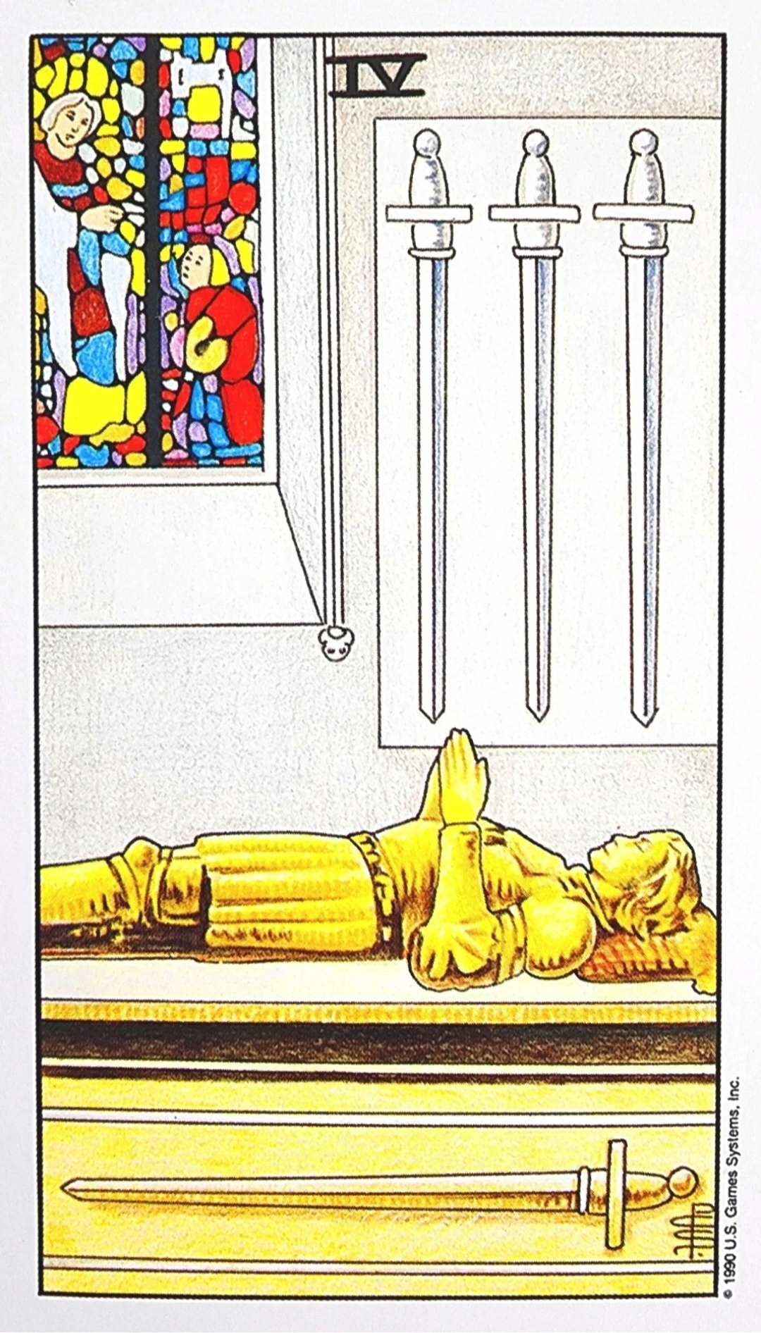 조용히 내 마음을 두드린 카드는 4번 검(Four of Swords) 카드였다. 이 카드는 휴식을 상징하며, 생각의 멈춤을 의미한다. 복잡한 생각과 고민, 근심과 잡념을 잠시 뒤로하고, 나 자신을 위한 쉼이 필요한 시기라는 메시지를 전하는 것 같았다. 나는 천천히 심호흡을 하며 그 의미를 음미한다.