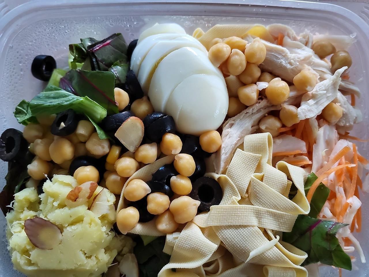 병원에서 신선 야채를 먹지 못해서 입에 감겼다. 병아리콩, 올리브, 닭 고기 살, 양배추, 당근, 얇게 썰어져서 먹기에 좋았다.