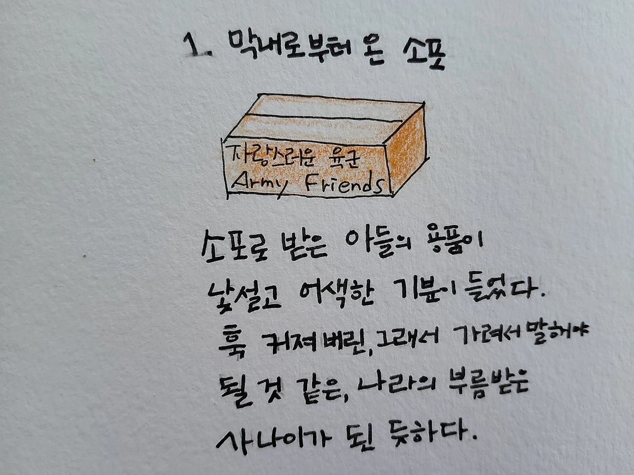 군대소포로 받은 아들의 용품은 낯설고 어색하다.