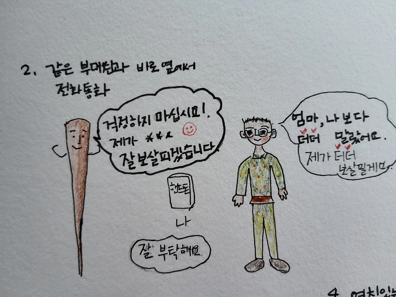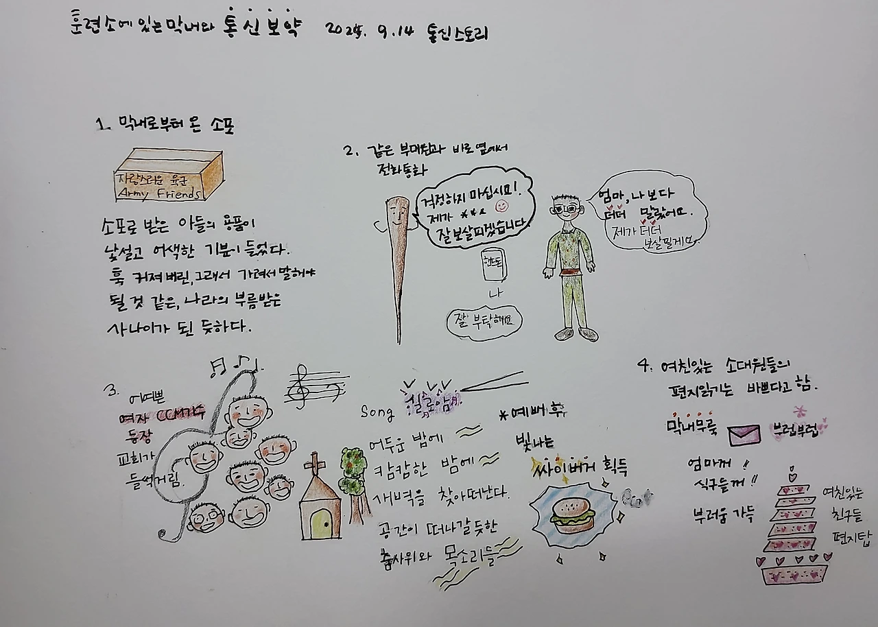 "엄마, 그 부대원 나보다 더 말랐어요. 더더 걱정돼서 제가 잘 보살펴줘야 돼요."