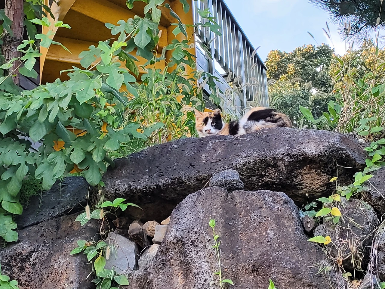 밖은 눈부신 햇살에 대추가 익어가고, 펜션 앞은 삼색 냥이가 돌 위에 지키고 있다. 저편엔 한탄강이 흐르고 너무나 큰 나무들이 있어 이 동네가 선사시대 유적지가 분명 있었음이 느껴진다.
