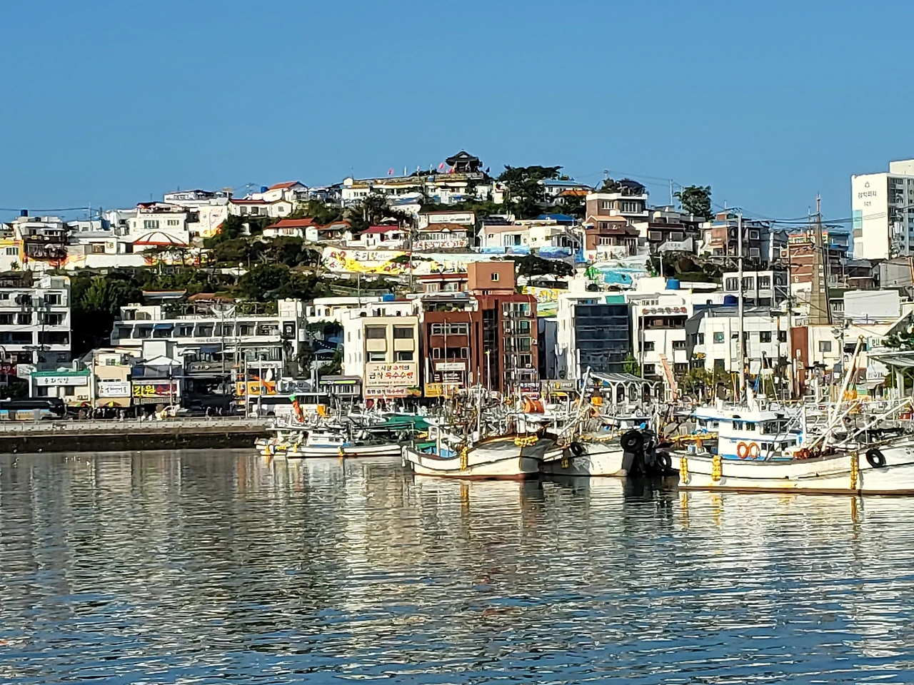 강구안에 새로 생긴 브리지가 있어 남망산 공원을 바로 연결한다. 높은 고개와 데크에서 보는 시야는 낮과 저녁을 다르게 비춰준다. 그리고 해안을 따라 라이트를 조성해 놓았다.
