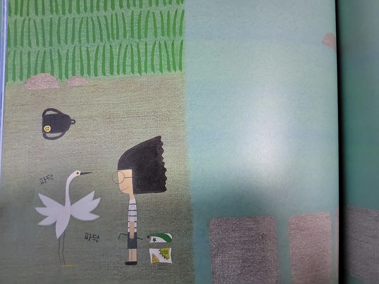 물귀신의 긴 머리카락을 타고 다시 탄천으로 돌아왔다. 친구인 쇠백로가 가방과 간식을 챙긴다. 쇠백로의 날개로 주인공의 머리카락을 파닥파닥 말려준다. 그리고 스마일 배지를 단 가방을 메고 오리들과 쇠백로에게 인사한다. 물의 색은 푸르게 변했다.