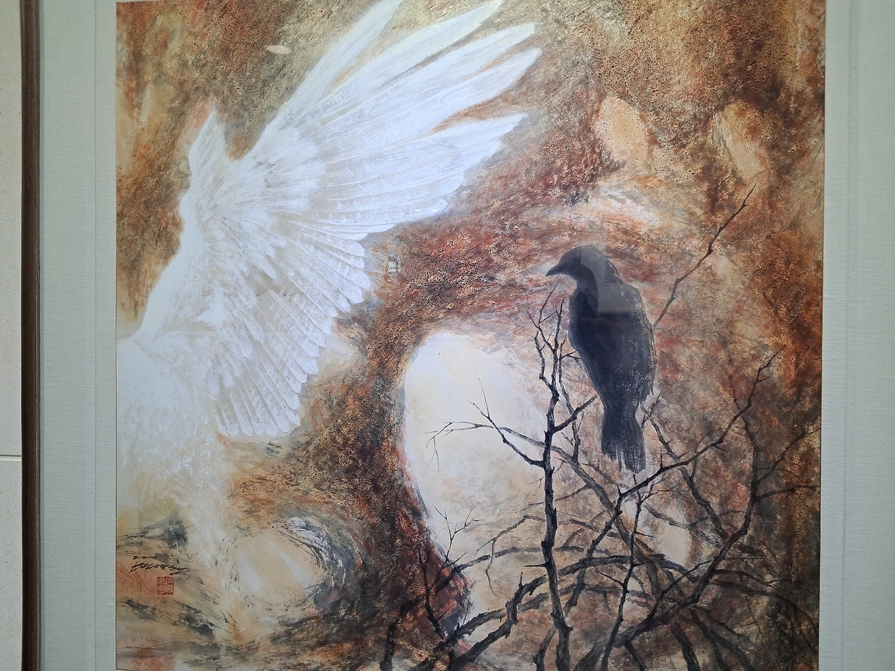 그림전시가 교회에서 있었다. <벧엘 하나님의 집으로 가는 길>이다. 이 작품은 야곱의 형 에서의 장자권을 훔치고 야반도주 중이다. 라반 삼촌댁으로 가는 길에 자기 미래가 어떻게 펼쳐질지 모르는 극도의 불안 상태에서 돌베개를 베고 눕는다.