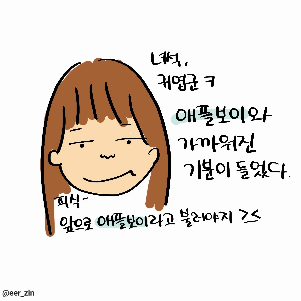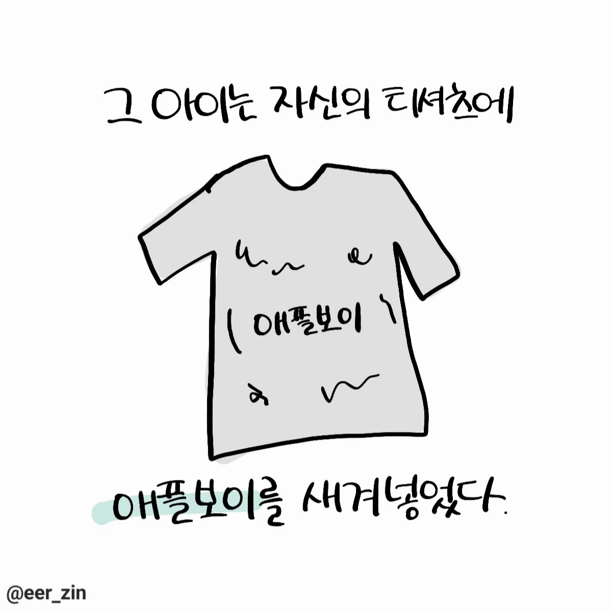 아이가 티셔츠 뒷면에 '애플보이'라고 적어놓았더라구요.