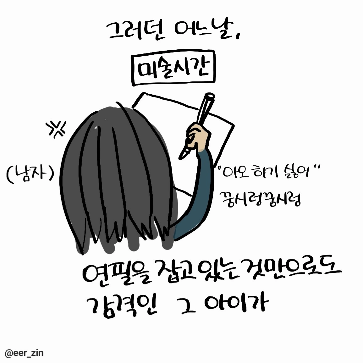 모든 수업 시간에 무감각했기에 미술시간도 예외가 아니었습니다. 그 아이는 보통 미술 2시간 내내 멍을 때리며 시간을 보냈어요.