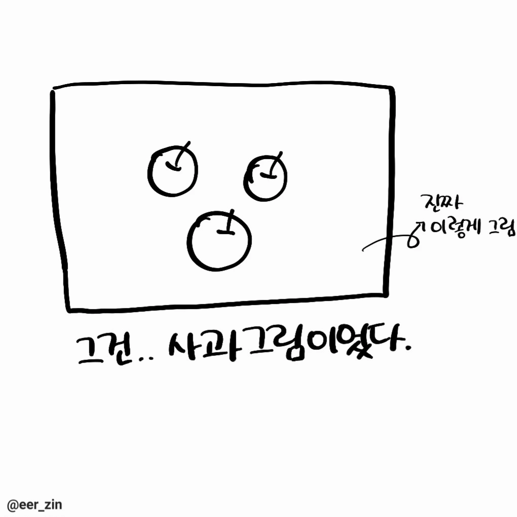 살짝 다가가서 보니 사과 3개를 그리고 있더라구요. 그것도 아주 허접한 솜씨로..ㅎㅎ