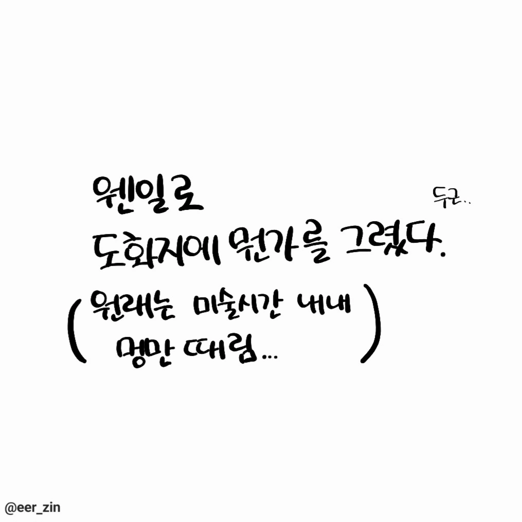 그런데 어느 미술시간에는 연필을 잡고 도화지에 뭔가를 그리고 있더라구요. 제가 잔소리 하지도 않았는데 말이죠.