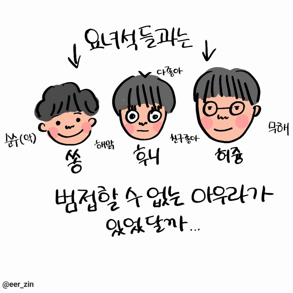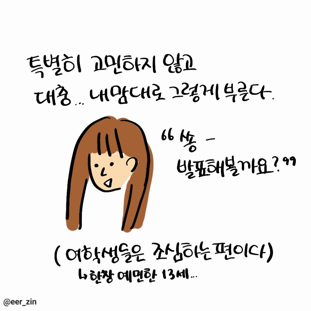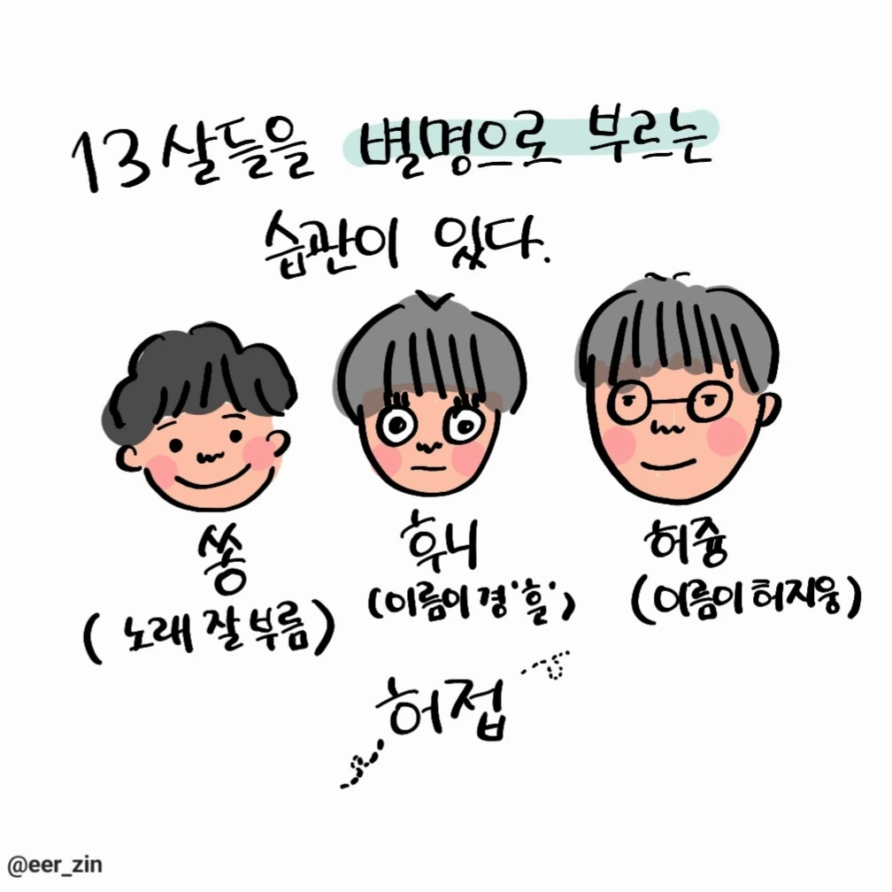 별명은 주로 남학생들에게만 지어줍니다. 13살 여학생들은 아무리 친해져도 한창 예민할 나이라 감히 별명을 만들어 부르기가 겁이 나서요.