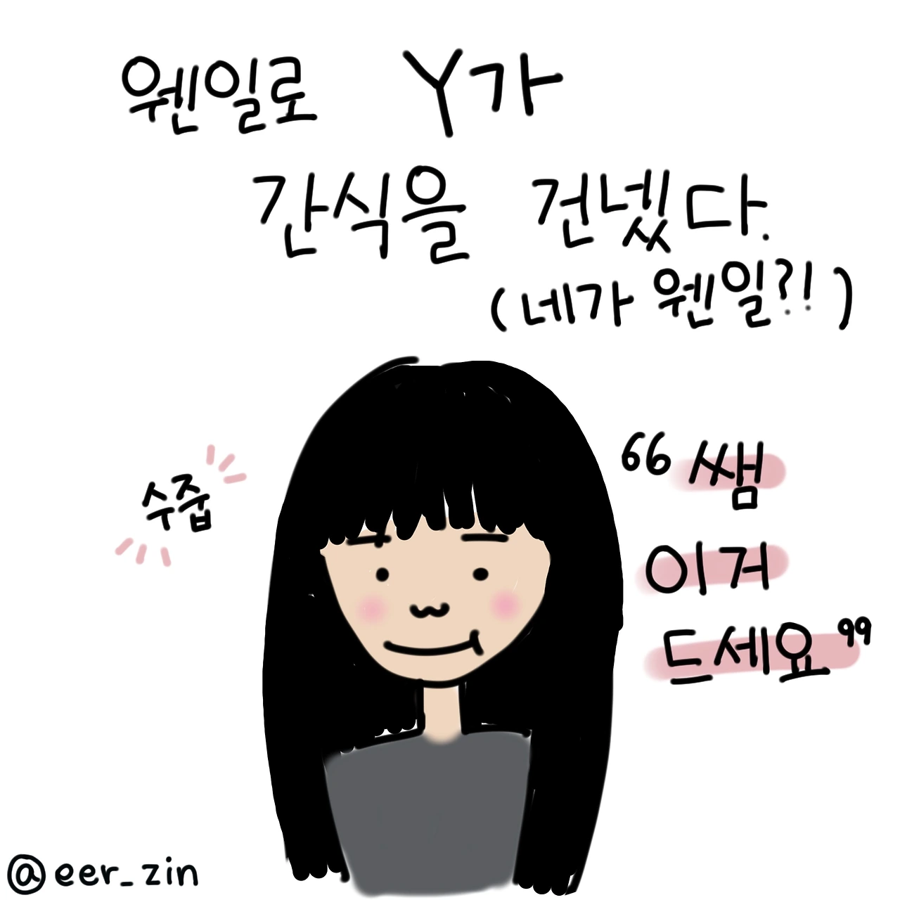 저는 Y가 내게 간식을 주다니..! 이럴 애가 아닌데! 하는 마음에 큰 감동을 받았습니다.