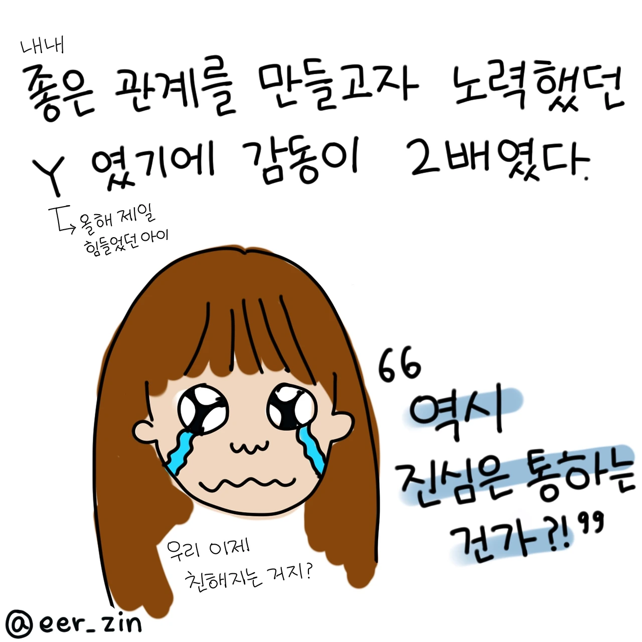 내가 느꼈던 것보다 우리가 가까웠구나. 우리 사이에 라포가 생겼구나. 너무 다행이고 고맙다.
