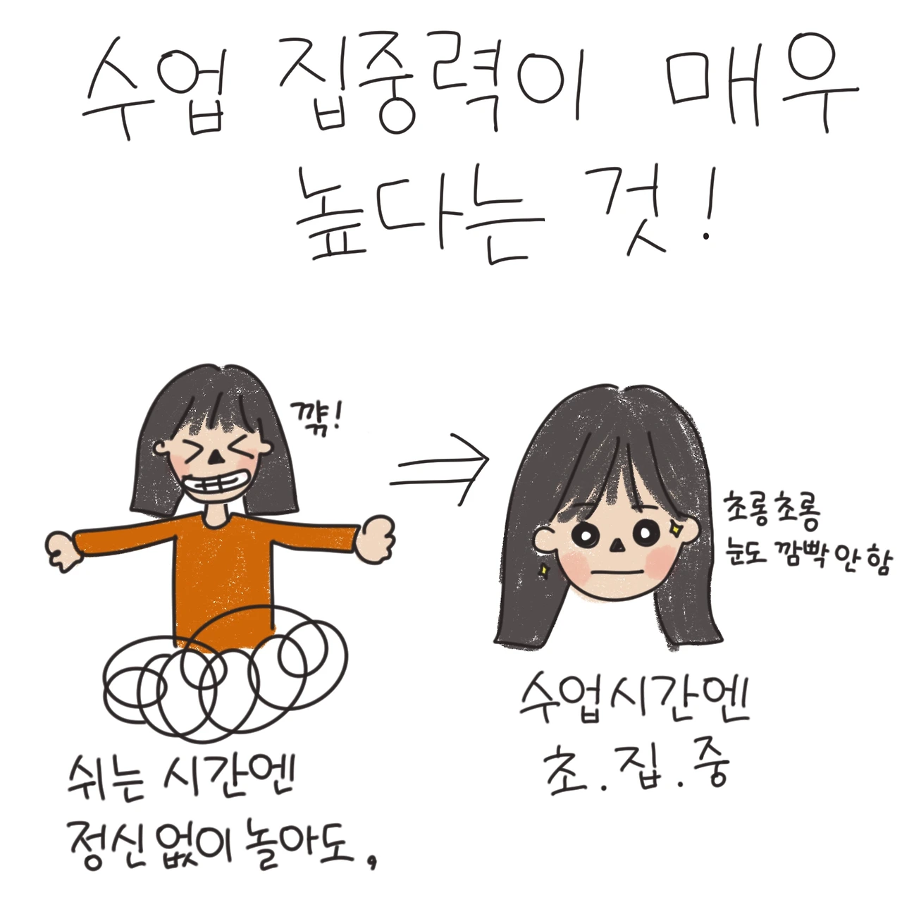 “공부 잘하려면 수업 시간에 집중해야 한다.”라는 진부하고 뻔한 결론에 다다른 것 같지만