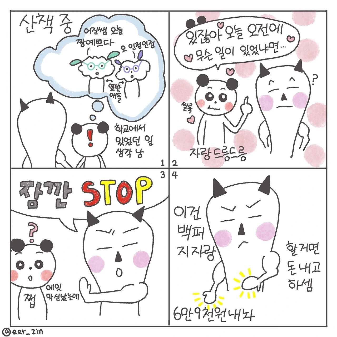 그날은 복도를 지나가던 다른 반 아이들이 교실에 앉아있는 저를 보고 "오늘 어진쌤 예쁘다."는 말을 들은 날이었습니다. 어우! 후! 좋더라고요! 심지어 저 들으라고 하는 말도 아니고 자기들끼리 속닥이는 걸 엿들어서 더 그랬을까요. 얼마나 좋았는지 그날 밤 산책할 때 번뜩! 생각이 났습니다.