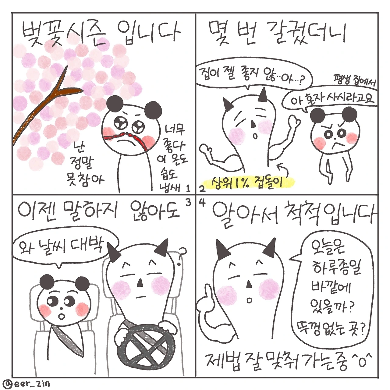 다시 또 4월입니다. 온갖 약속을 나누고, 미루고, 또 지켜나가는 중이고요. 저는 오늘도 끝내주는 하루를 보내러, 봄을 타러, 넘실넘실 다가오는 좋은 일들을 맞이하러 가보겠습니다.