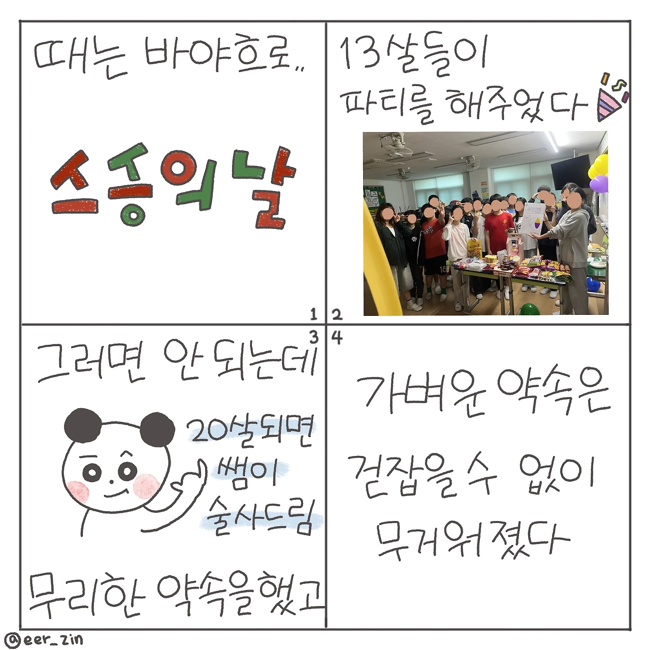 가볍게 뱉은 약속은 기억력이 좋은 몇몇 아이들로 인해 걷잡을 수 없이 무거워졌습니다.