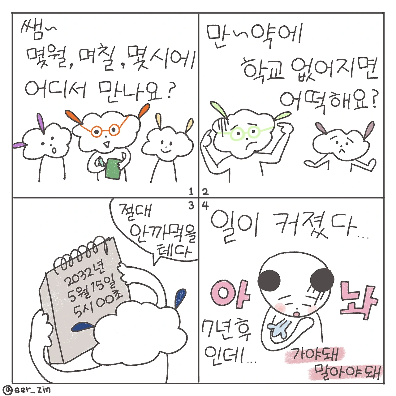 "선생님! 저희 20살 때 만나기로 한 거요, 정확히 몇 월 며칠 몇 시에 만나는 거예요?"