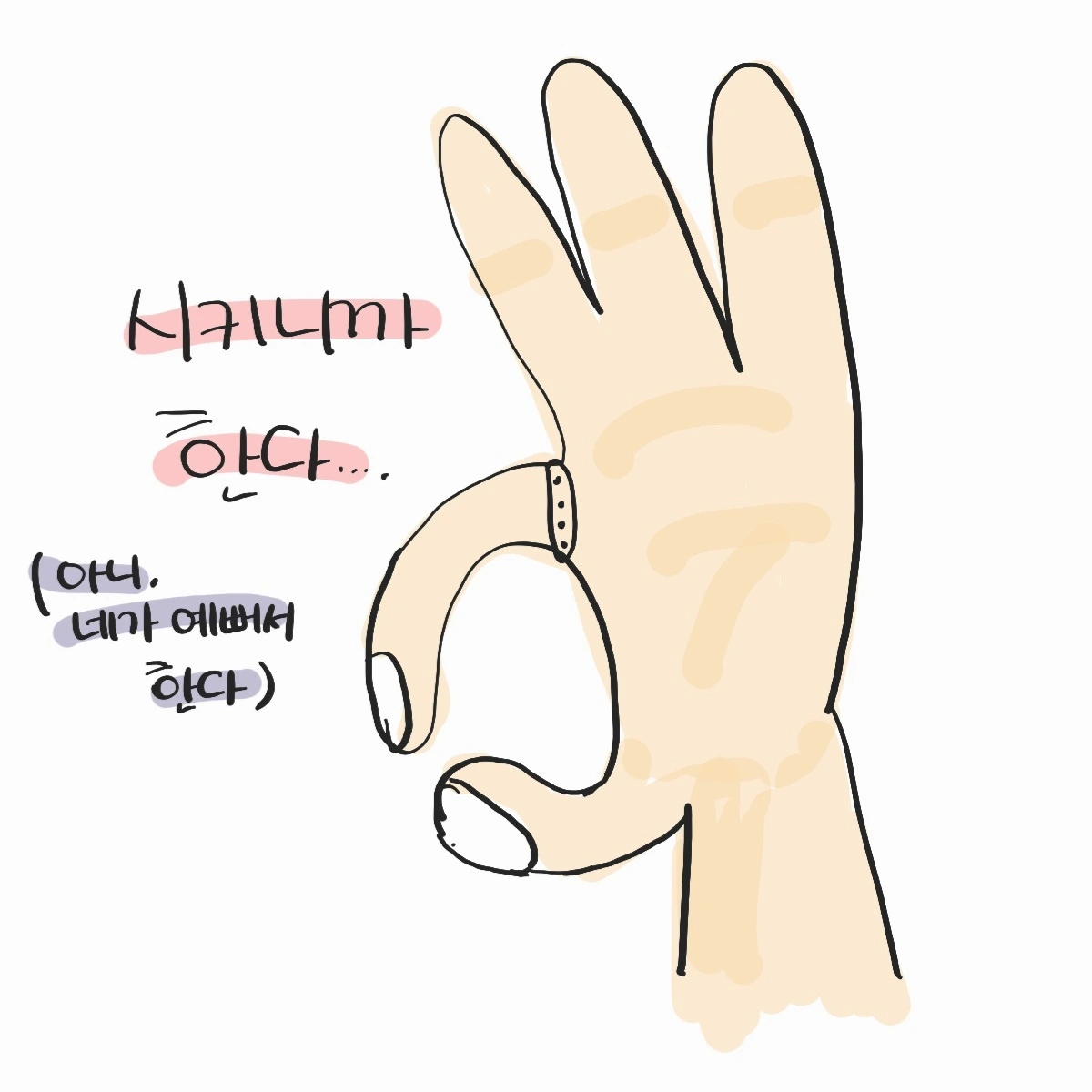하며 손가락으로 오케이 표시를 만들어보이더라구요.