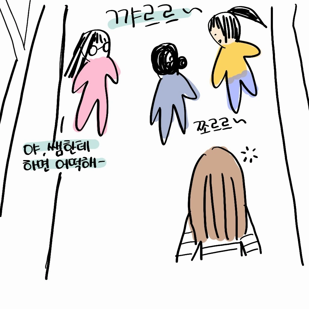 그렇게만 말하고 뒤돌아 쪼르르 친구들에게로 달려가는 공주.