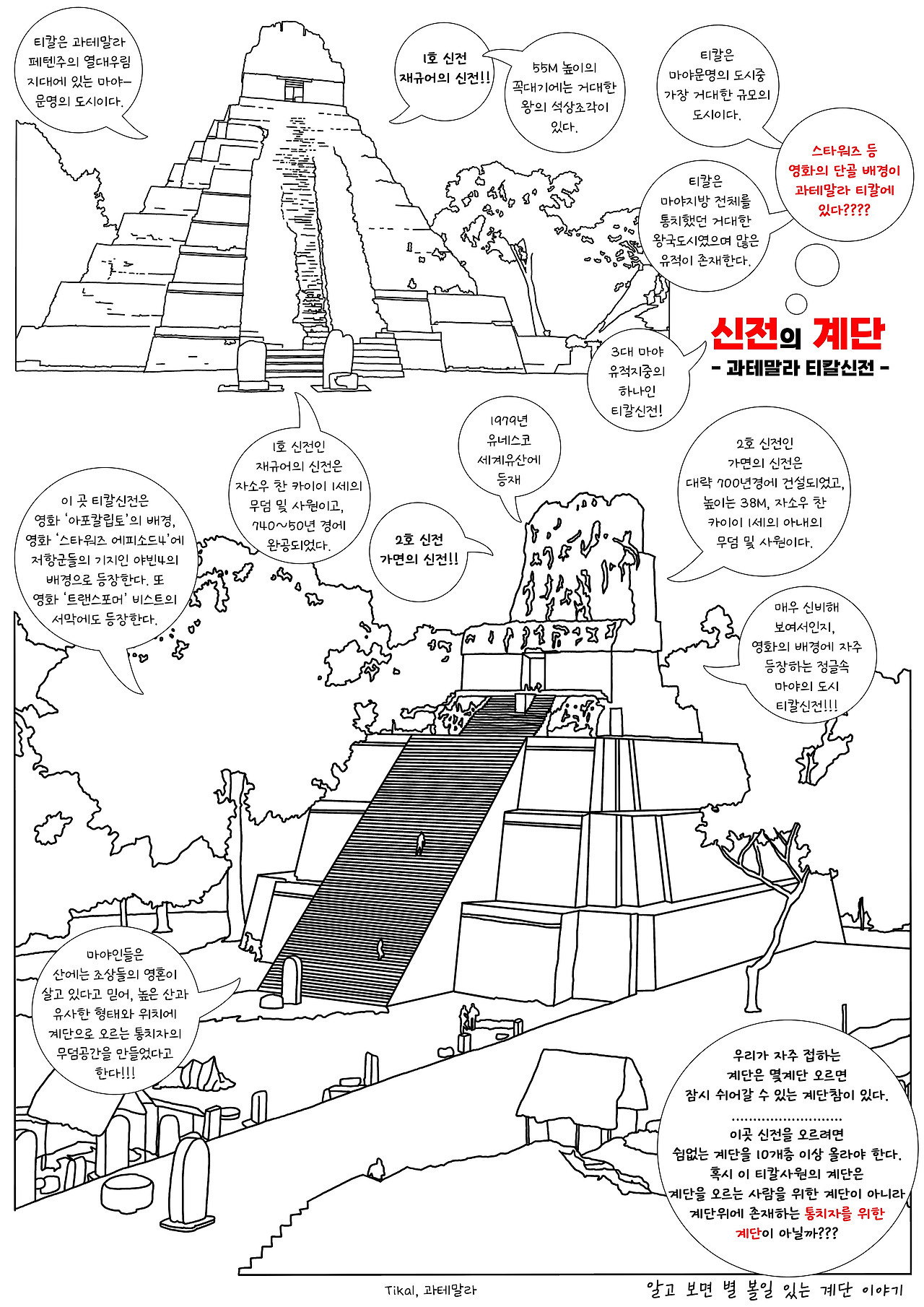 #계단 #티칼 #티칼신전 #마야유적지 #재규어의신전 #가면의신전 #알별계 #알고보면별볼일있는계단이야기