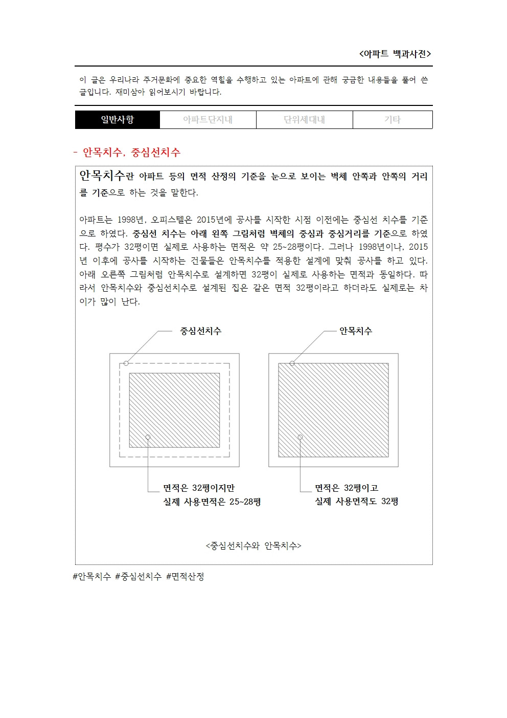 아파트에서는 쓰이는 안목치수와 중심선치수란 무엇인가?