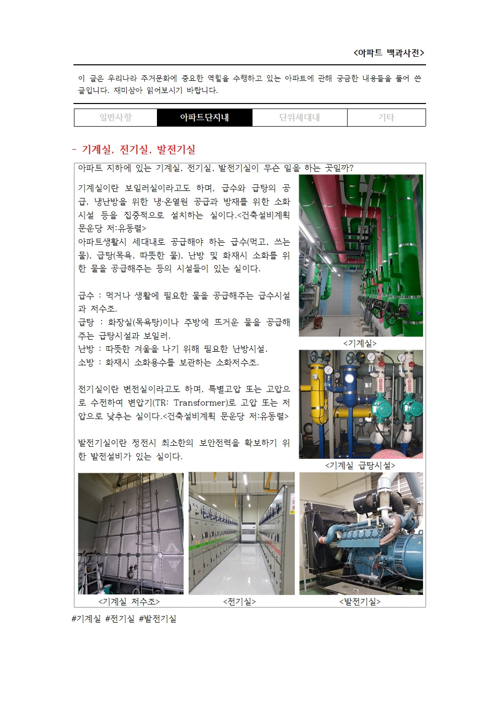 #기계실 #전기실 #발전기실