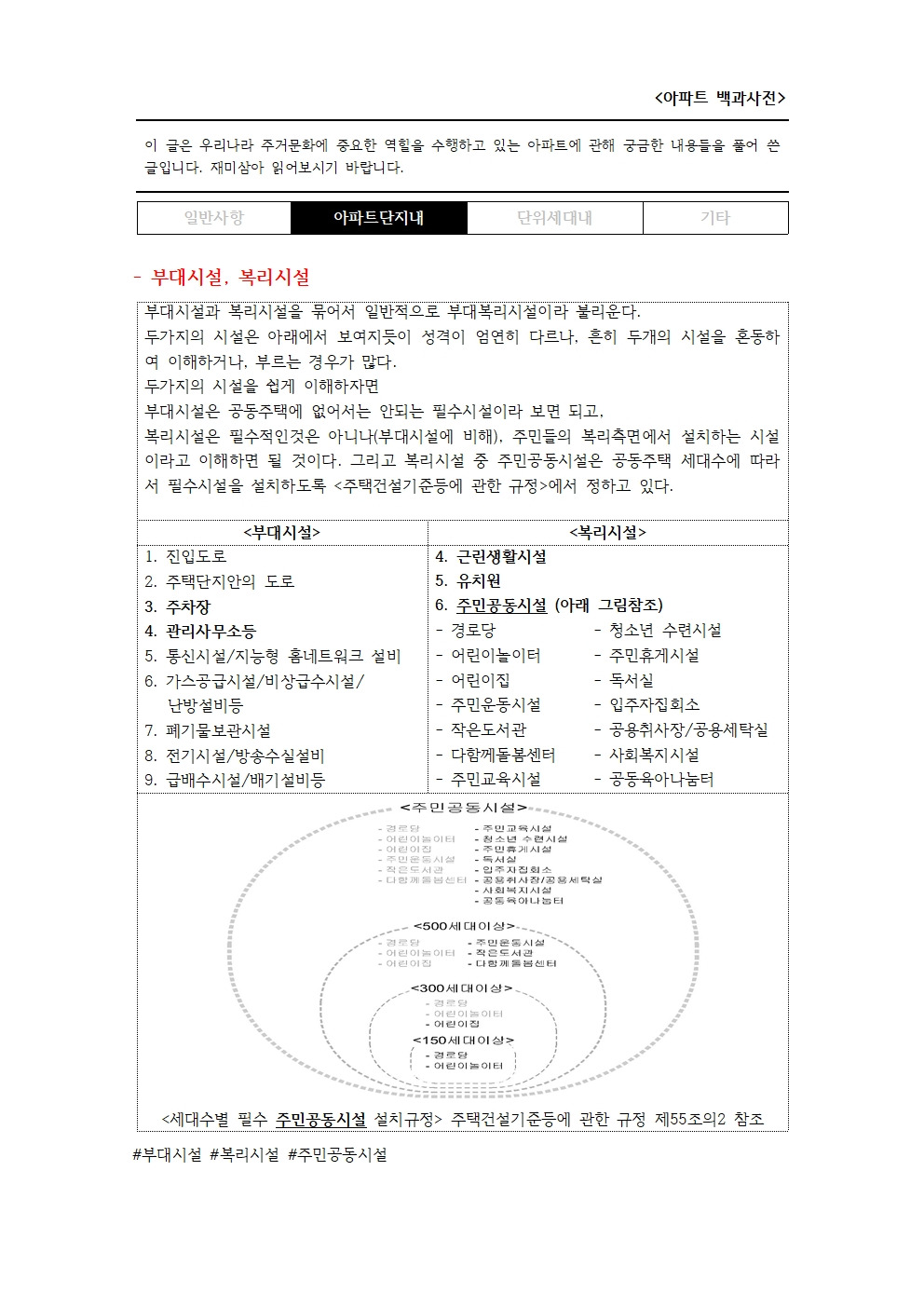 부대시설과 복리시설, 주민공동시설이란 무엇인가?