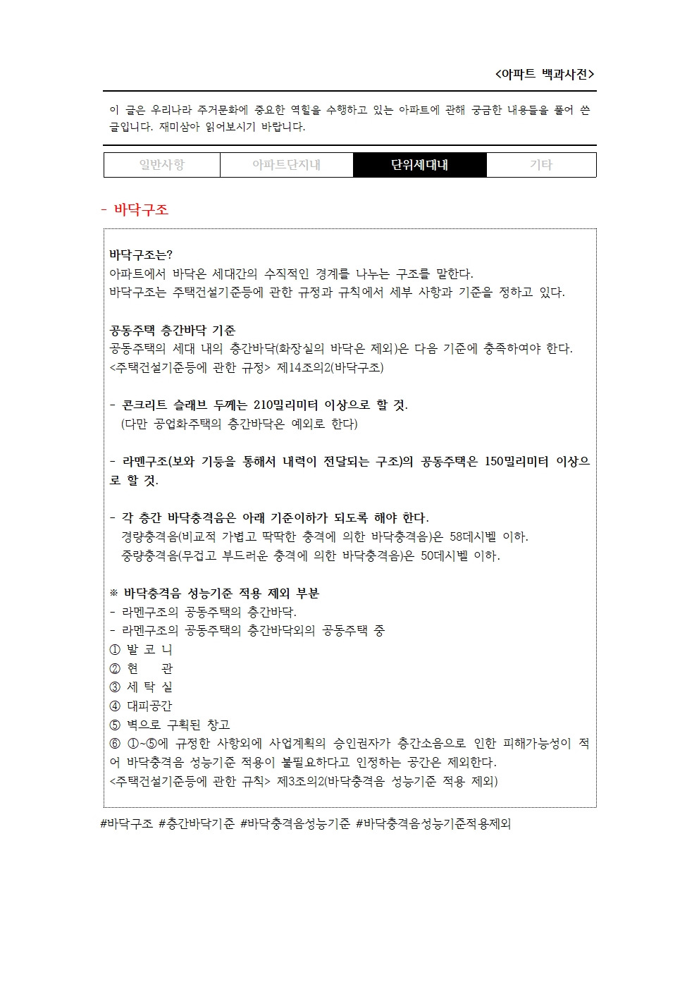 #바닥구조 #층간바닥기준 #바닥충격음성능기준 #바닥충격음성능기준적용제외