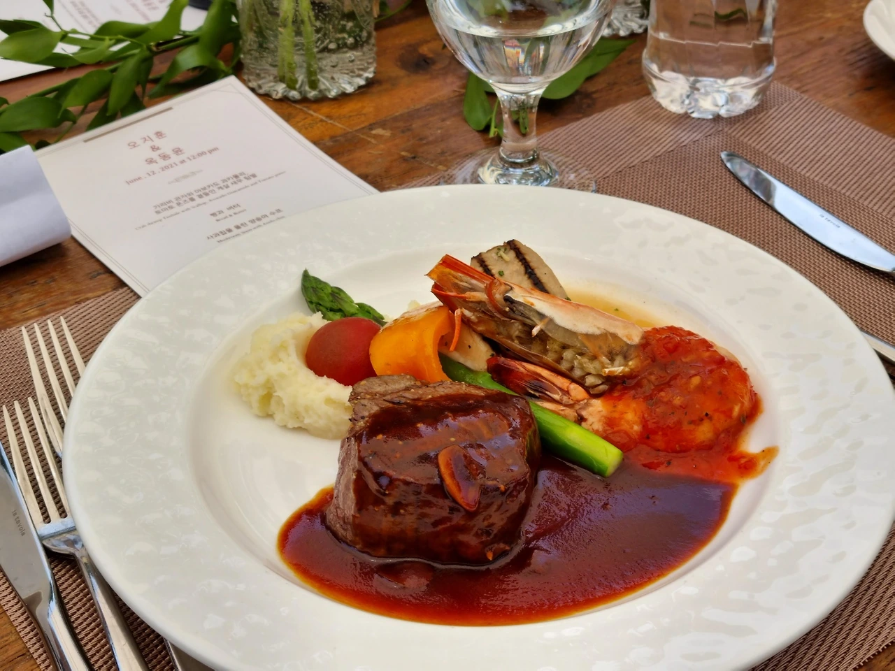 코로나 상황을 고려해서 코스메뉴로 진행하였어요.