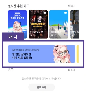 위의 제페토 화면을 보면, 첫 번째 배너를 보여줄 때 왼쪽 끝은 비워두고, 오른쪽 끝에는 배너(노란색)가 있어 유저로 하여금 '지금 보고 있는 게 첫 번째고, 다음으로 넘어가면 또 다른 걸 볼 수 있구나' 자연스럽게 유추하도록 합니다.